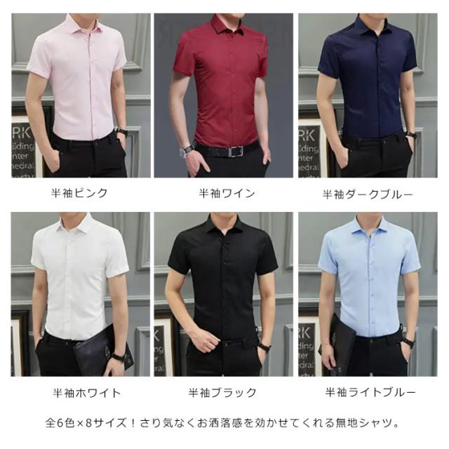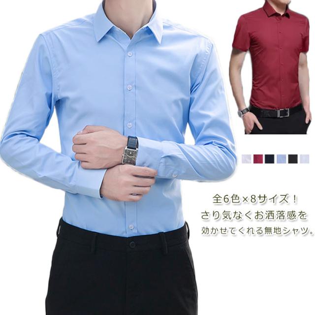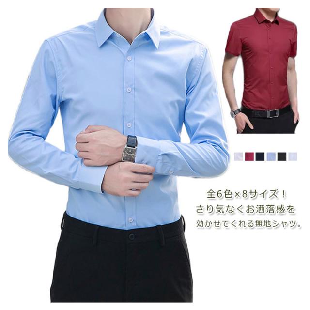 全6色×8サイズ! シャツ メンズ ビジネスシャツ フォーマルシャツ 無地シャツ 半袖 長袖 ビジネス カジュアル レギュラーカラー シンプル 白シャツ 大きサイズ 紳士服 トップス 春 夏 秋