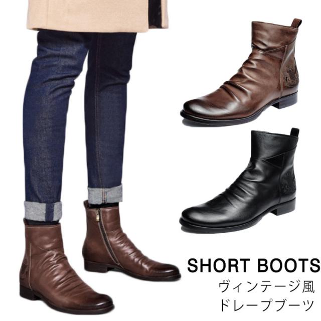 ワークブーツ メンズ ドレープブーツ ショートブーツ エンジニアブーツ ビンテージブーツ フェイク レザー ブーツ ミリタリーブーツ ハイカット カジュアルブーツ 靴