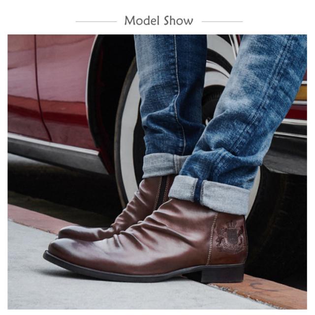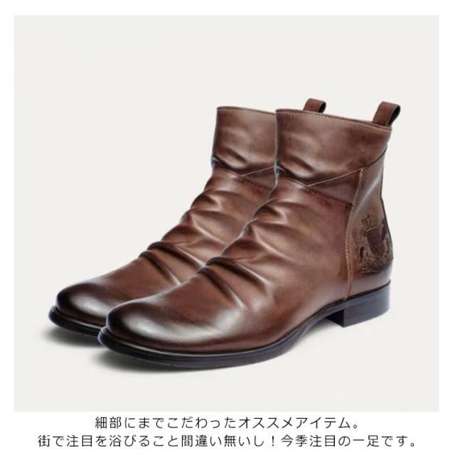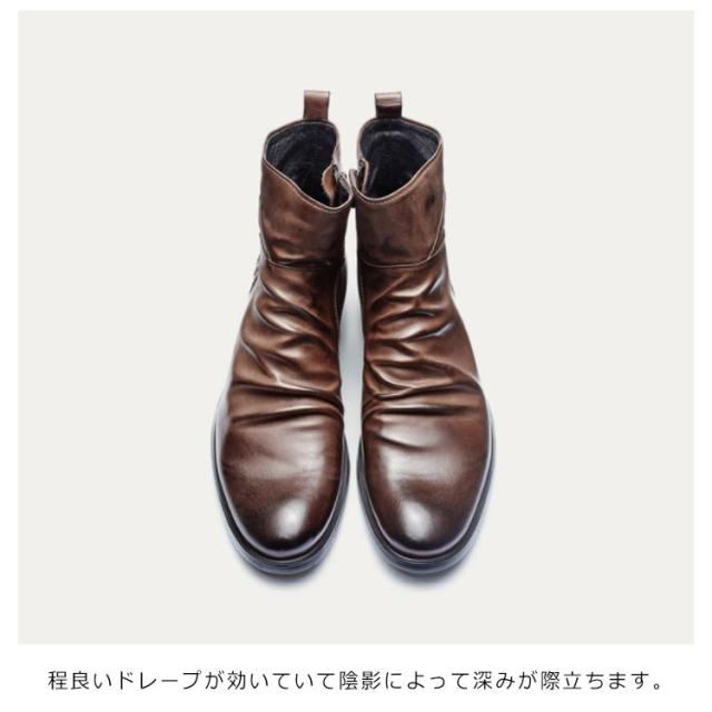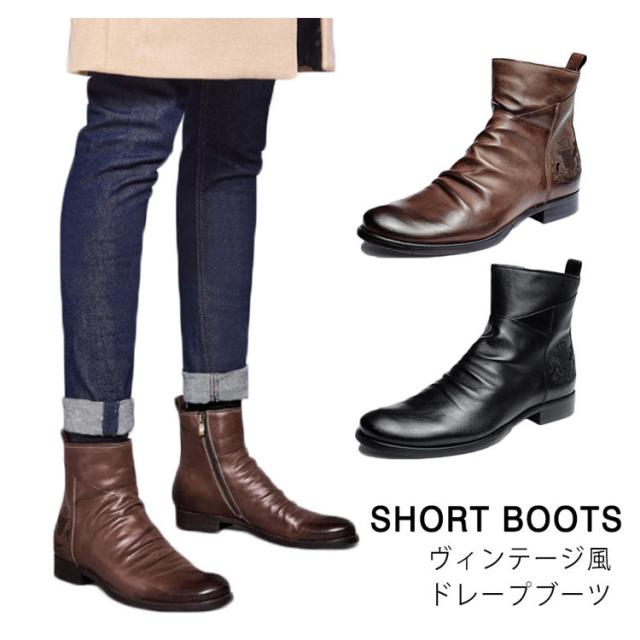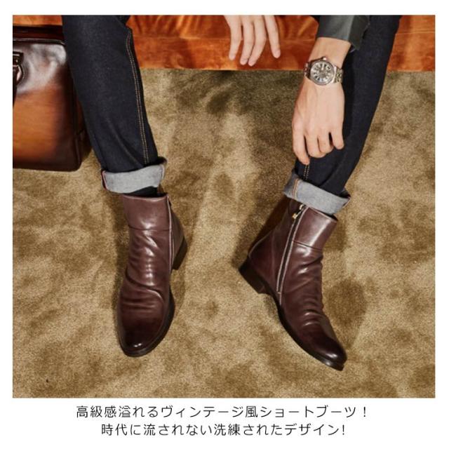 | 高級感溢れるヴィンテージ風ショートブーツ!時代に流されない洗練されたデザイン! シンプルなデザインなので着こなしの幅が広いアイテム。オシャレは足元から☆ ボトムスを選ばない、着回しやすい一足です。シンプルで上品なデザインが高級感を漂よわせています!センスのいい男の必須アイテム! | |