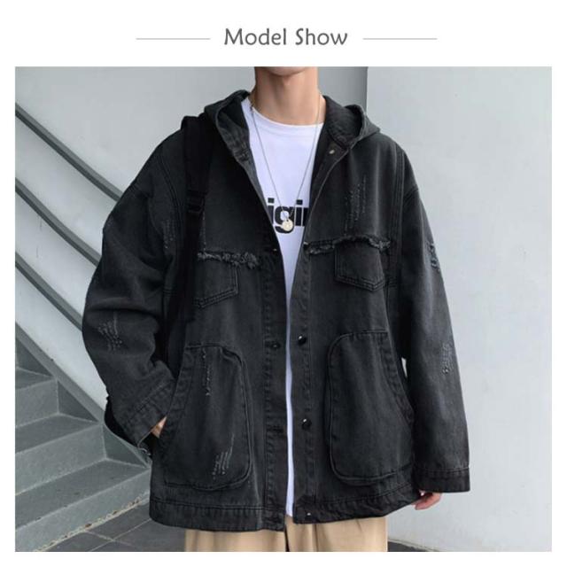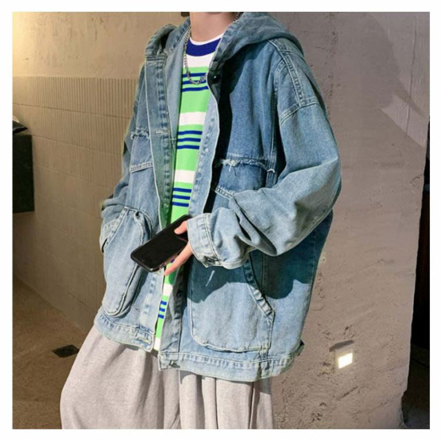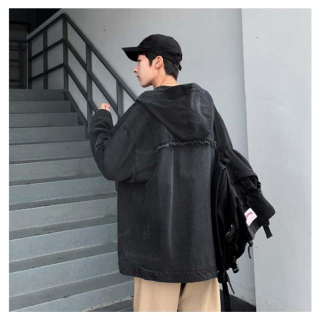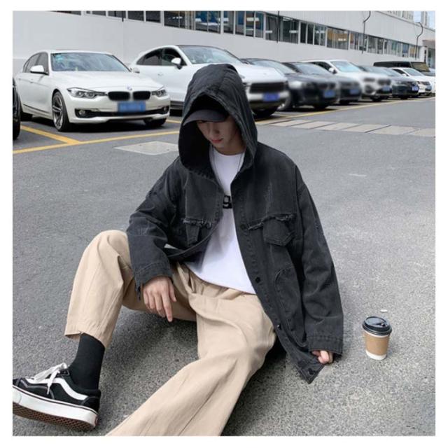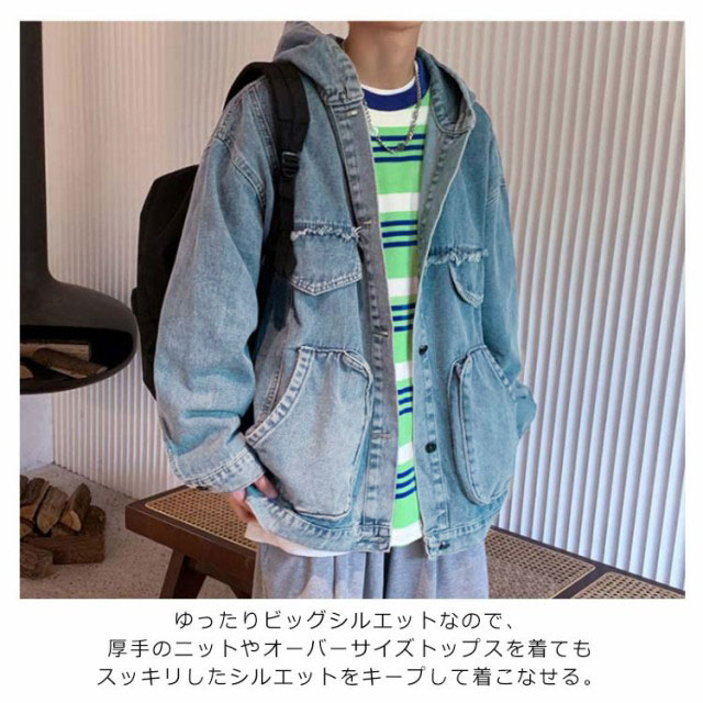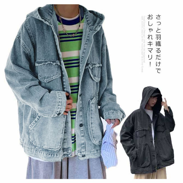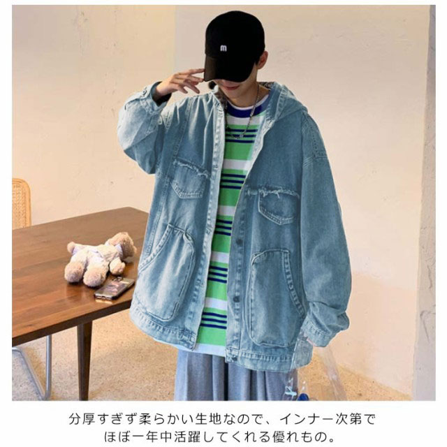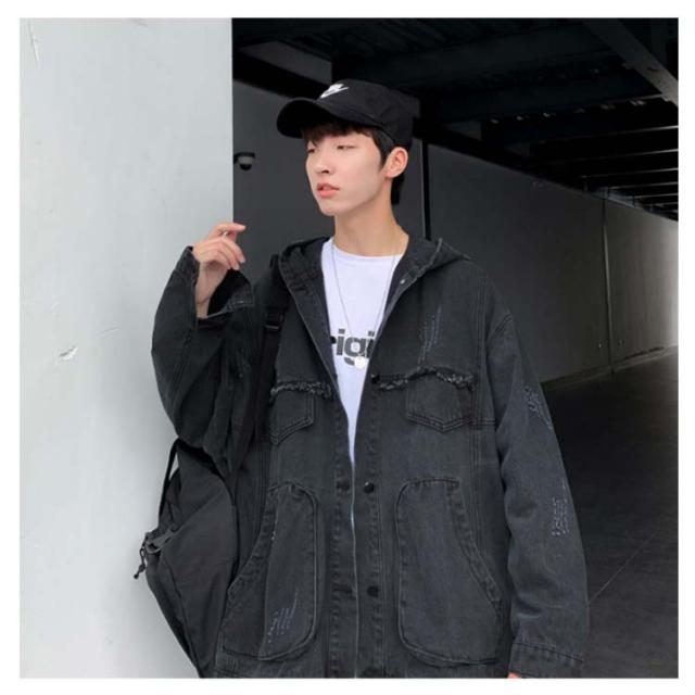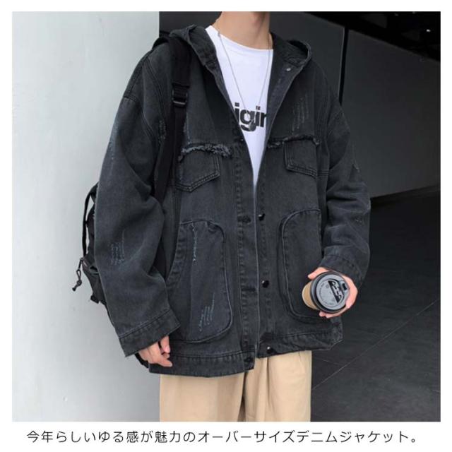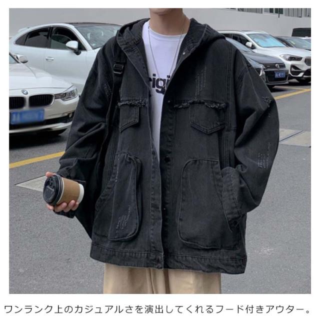 デニムジャケット メンズ Gジャン BIGサイズ フード付 ダメージ加工 クラッシュ加工 ジャケット アウター スプリングコート ゆったり ジージャン 春服 新作 春秋 韓国ファッション 20代30代40代