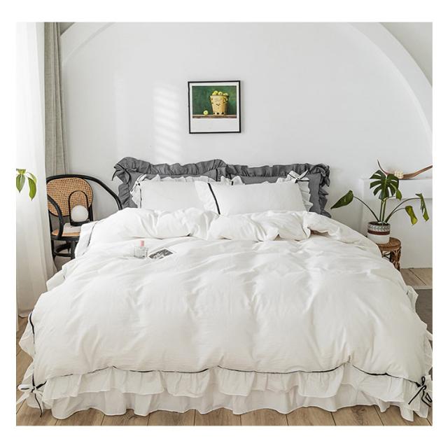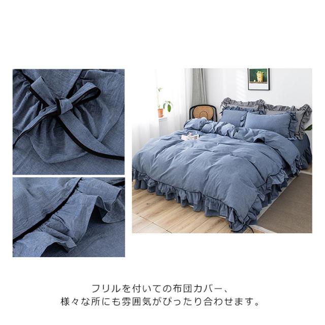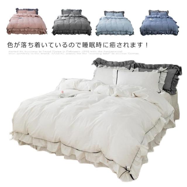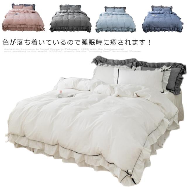 布団カバー ダブル 4点セット ベッドカバー シーツカバー 掛け布団カバー 寝具カバーセット 綿 カバーセット フリル付き おしゃれ かわいい 丸洗いOK