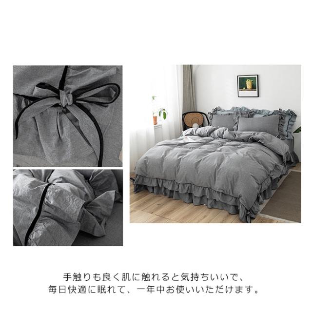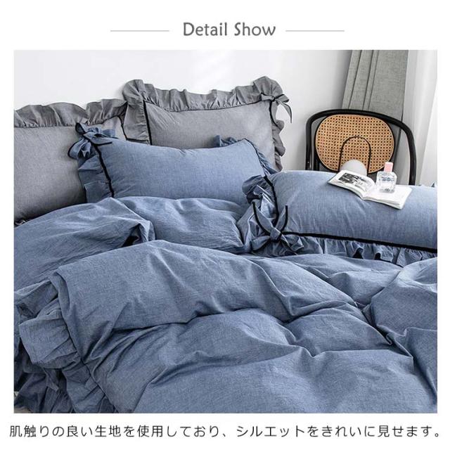 | 色が落ち着いているので睡眠時に癒されます! 手触りも良く肌に触れると気持ちいいで、毎日快適に眠れて、一年中お使いいただけます。 フリルを付いての布団カバー、様々な所にも雰囲気がぴったり合わせます。 発散性に優れているので、蒸し暑い季節でもべたっとせず、さらっとした肌触りです。 | |
