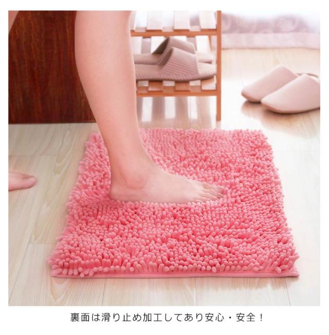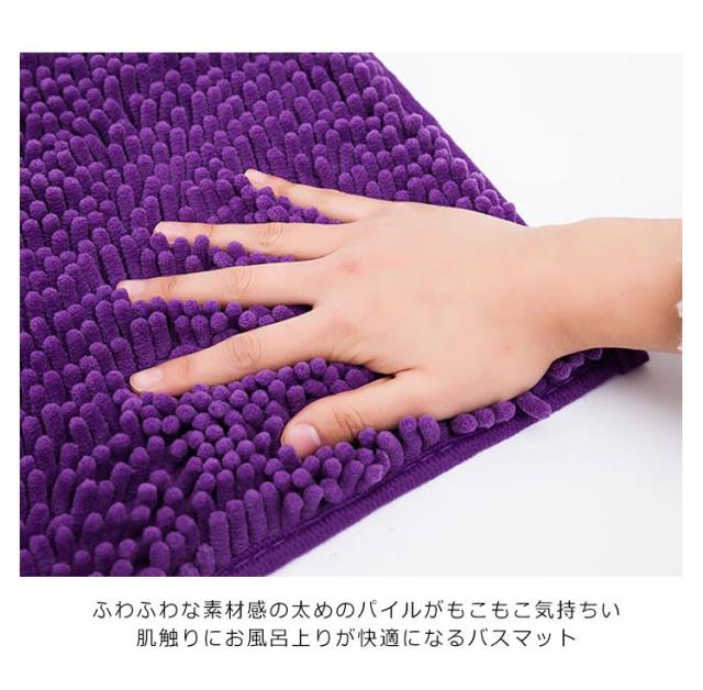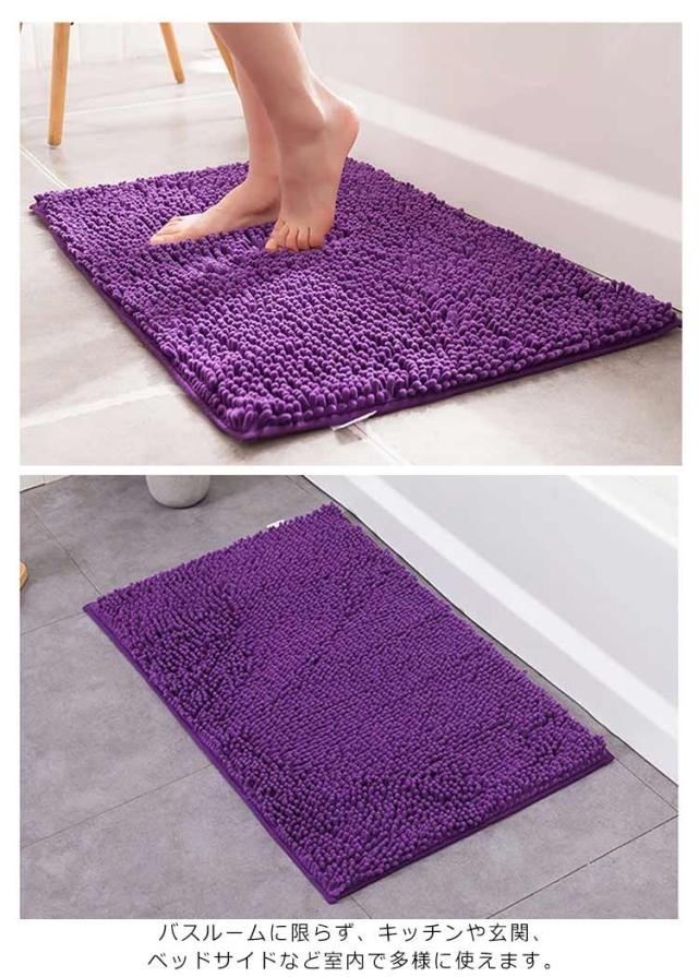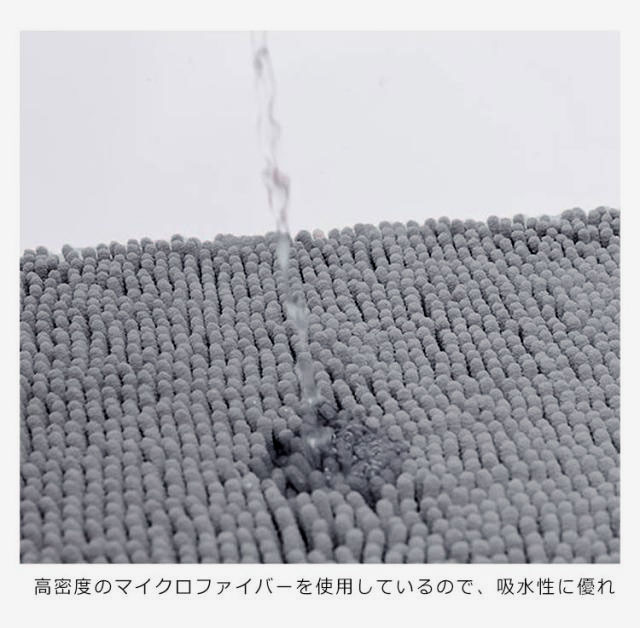 | マイクロファイバー素材のバスマット。 バスルームに限らず、キッチンや玄関、ベッドサイドなど室内で多様に使えます。 広い場所でも繋げて敷いて使える。 裏面は滑り止め加工してあり安心・安全! | |