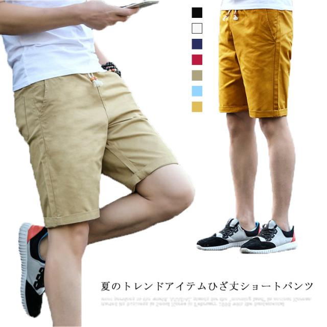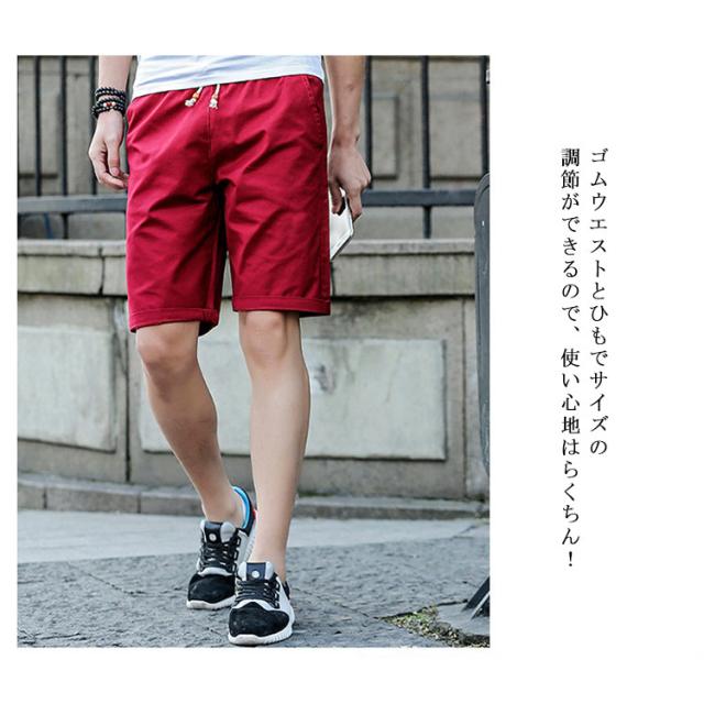 【送料無料】ハーフパンツ メンズ ショートパンツ ショーツ ボトムス パンツ メンズ ハーフ ストレッツ イルショーツ コットン ウエストゴム ひも付き ポケット付き 短パン ショーツ チノパンツ