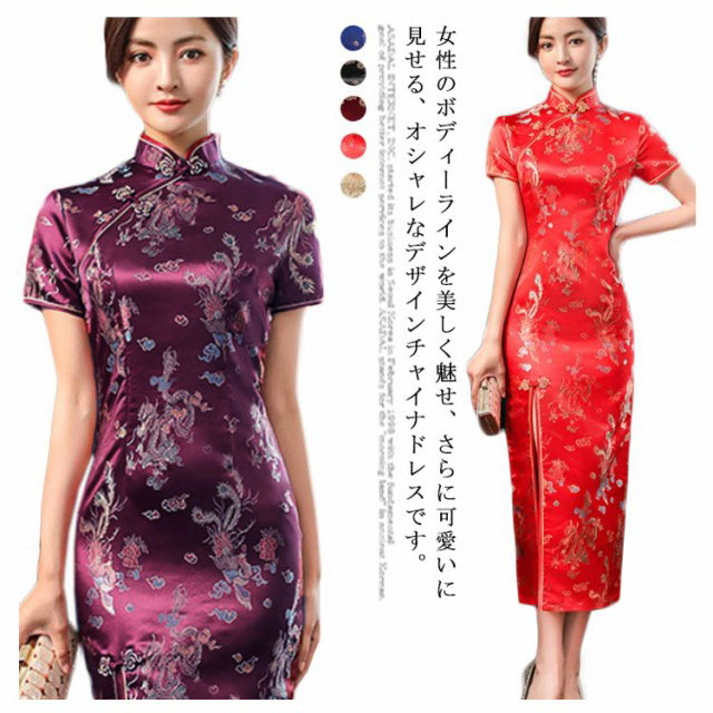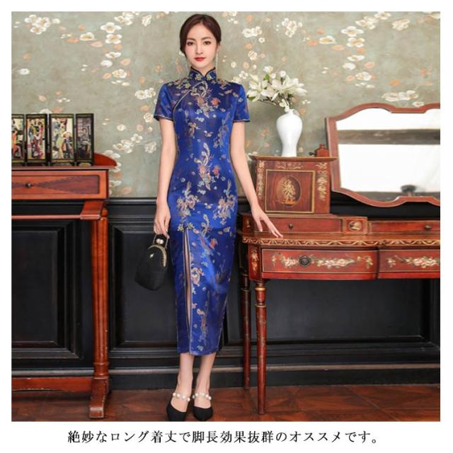 2021新作 チャイナドレスロング 半袖 ハロウィン コスプレ 龍鳳柄 花柄 チャイナドレス 服 コスプレ ロング S M L XL 2L 3L 4L 5L チャイナワンピース 花柄 黒 赤 青 ブルー 春 夏 秋 冬 女性 大人 可愛い おしゃれ