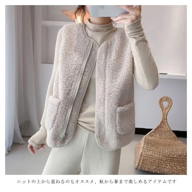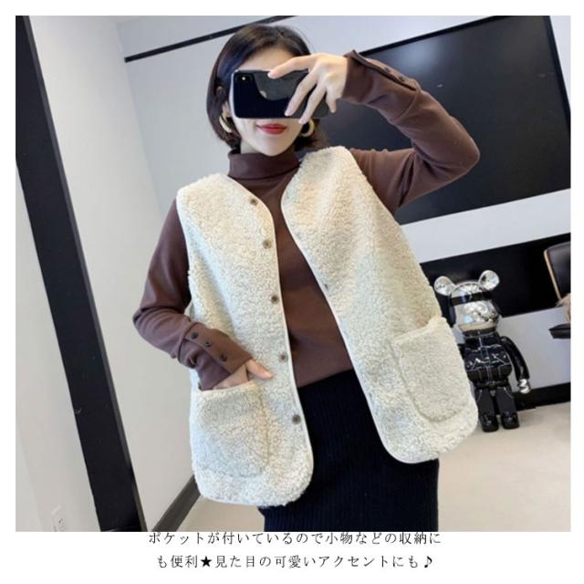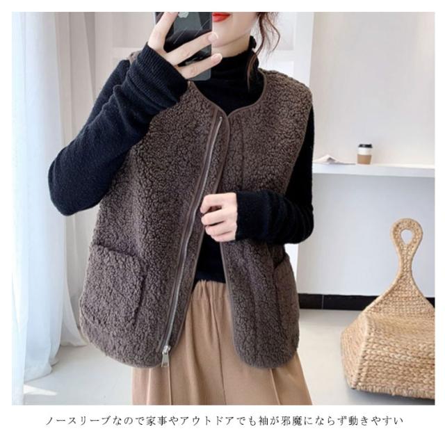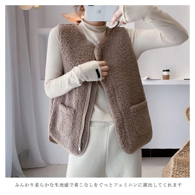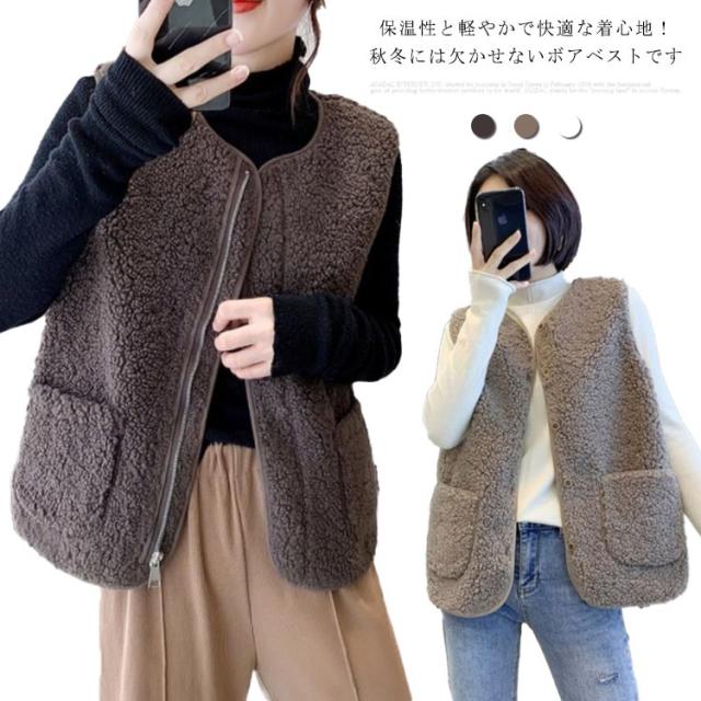 ボアベスト レディース チョッキ もこもこ ベスト あったか 防風 ポケット付き トップス ノースリーブ ふわふわ 柔らかい 韓国風 ファッション 秋冬 防寒 普段着 お洒落