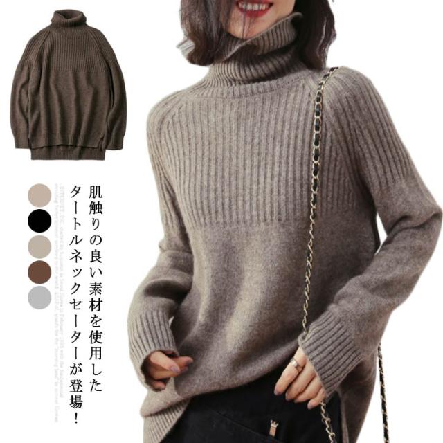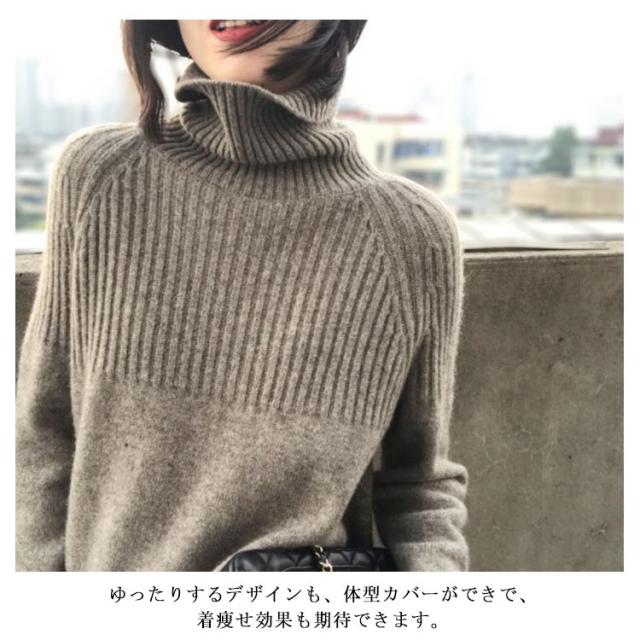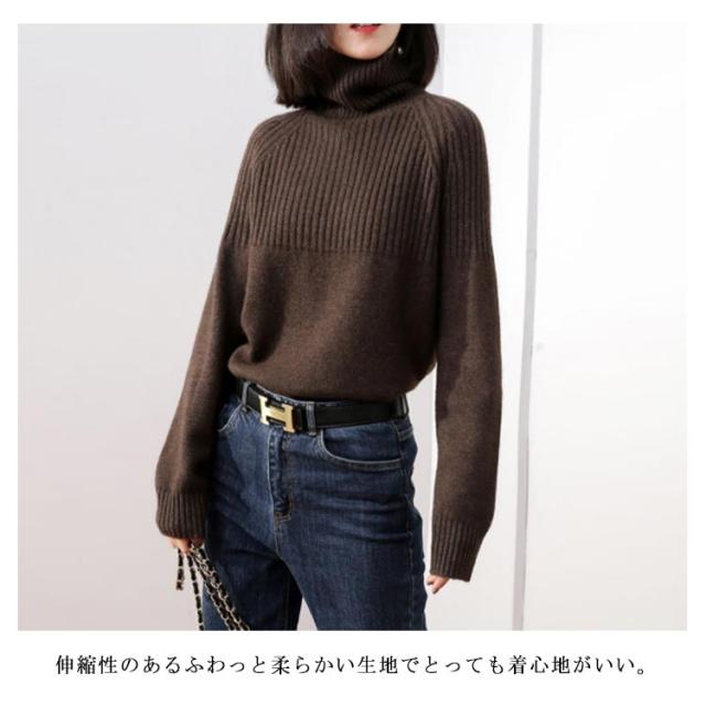 ニット セーター レディース ハイネック リブ切り替え 長袖 プルオーバー タートルネック トップス ビックシルエット 秋冬 暖かい ゆったり 無地 カジュアル 厚手 着痩せ 大きいサイズ 女性 おしゃれ