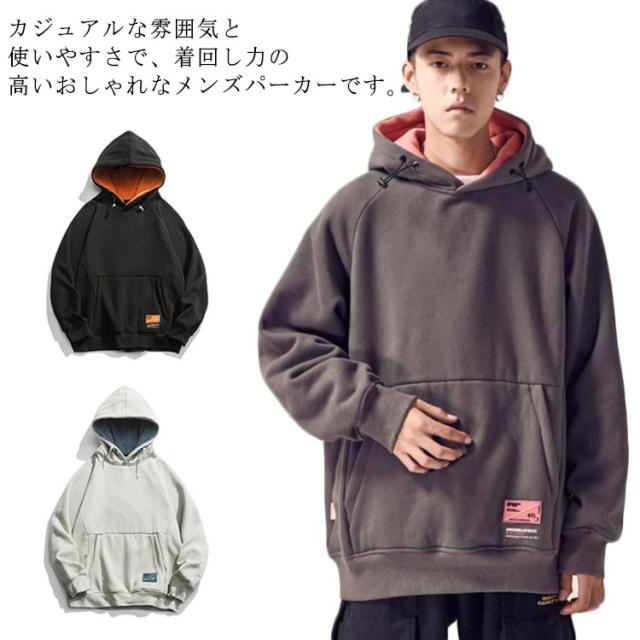 パーカー メンズ プルオーバーパーカー スウェット 長袖 ビッグシルエット フード付き 無地 トップス 秋冬 春 スポーツ 韓国ファッション ゆったり シンプル カジュアル 大きいサイズ おしゃれ