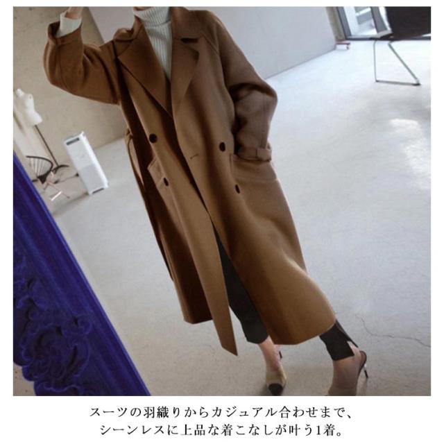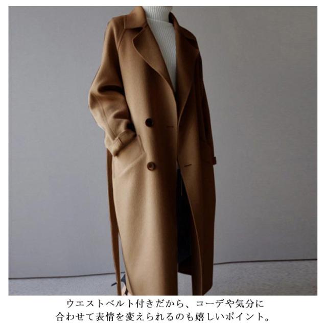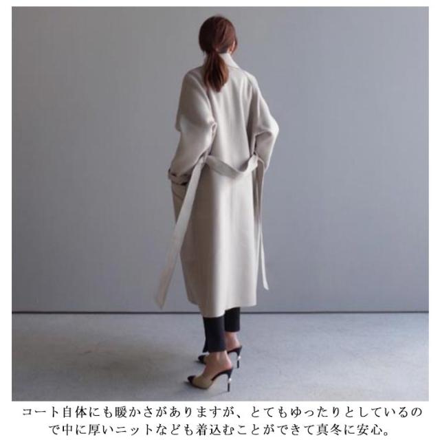 | 究極の美シルエットロングコート。 コート自体にも暖かさがありますが、とてもゆったりとしているので中に厚いニットなども着込むことができて真冬に安心。 お尻も太もももスッポリと隠れる丈感で、防寒とともに体型カバー効果にも優れています。 小顔効果をもたらす大きめの襟や、縦長シルエットが魅力♪ ウエストベルト付きだから、コーデや気分に合わせて表情を変えられるのも嬉しいポイント。 スーツの羽織りからカジュアル合わせまで、シーンレスに上品な着こなしが叶う1着。 | |
