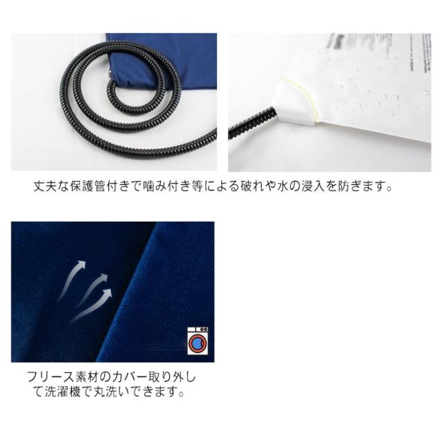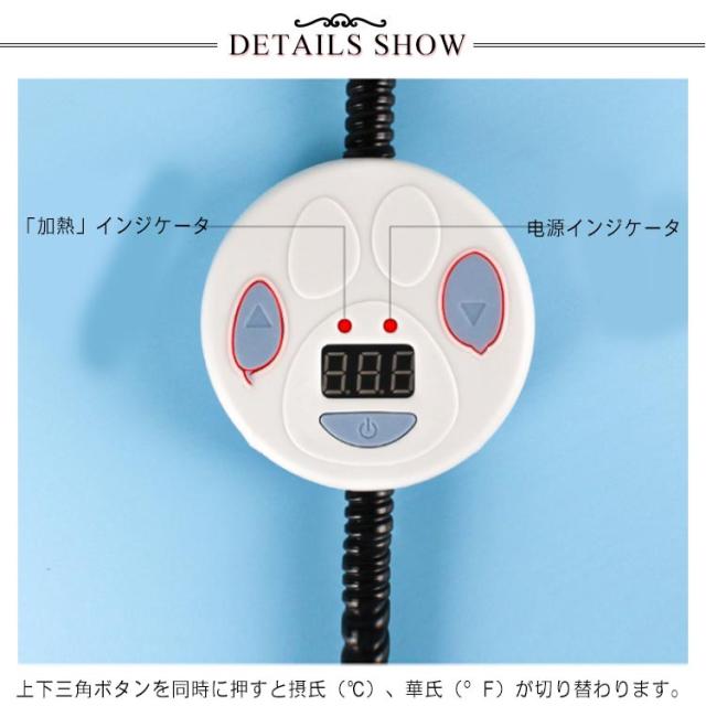 | 7段階温度調節・耐噛み・恒温機能・防水・お手入れ簡単 7段階温度調節可能!5℃~55℃の7段階の温度調節が可能です。 サーモスタット内蔵!サーモスタットが搭載されていることにより自動ON/OFFなどを実現しています。ホットカーペットが作動中に「加熱」インジケータが点灯し、本体が加熱状態であります。設定した温度になるとインジケータが消灯し、自動的にOFFします。断電温度が設定温度より低い場合、ホットカーペットが再び自動的に起動し加熱状態に入ります。 丈夫な保護管付きで噛み付き等による破れや水の浸入を防ぎます。 IP67級防水設計でペットがおしっこしたり、水をこぼしたりしても内部に漏れないので、電気事故等の心配はいりません、ペットの安全を守れます。 フリース素材のカバー取り外して洗濯機で丸洗いできます。 | |