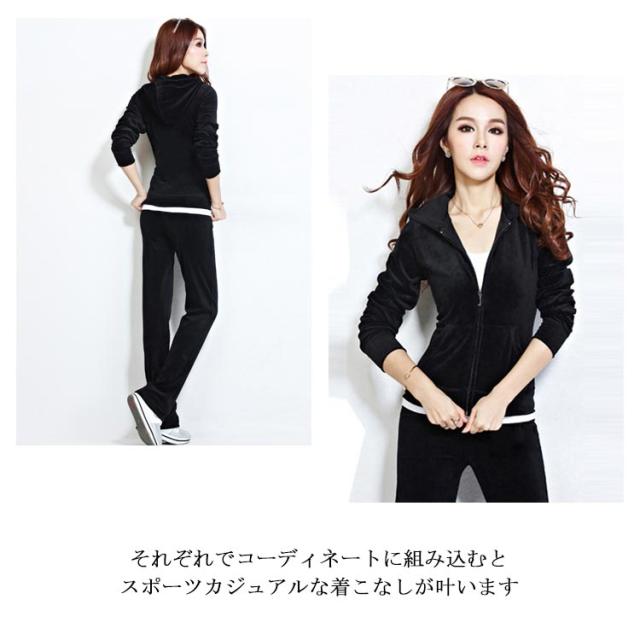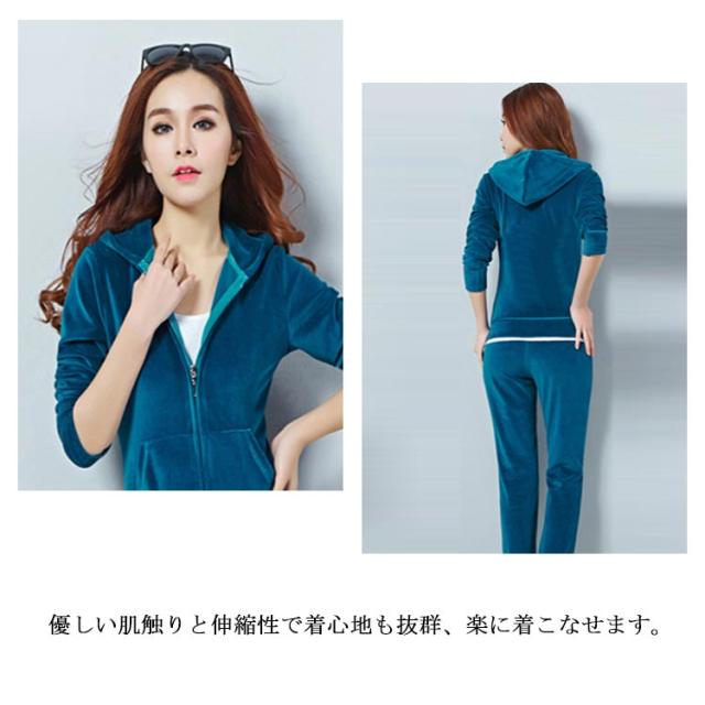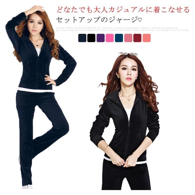 ジャージ セットアップ 上下セット レディース フード付 女の子 おしゃれ ベロア スウェット 大きいサイズ スポーツ トップス ズボン 長袖 無地 パーカー パンツ ダンス ルームウェア ジップアップ 部屋着