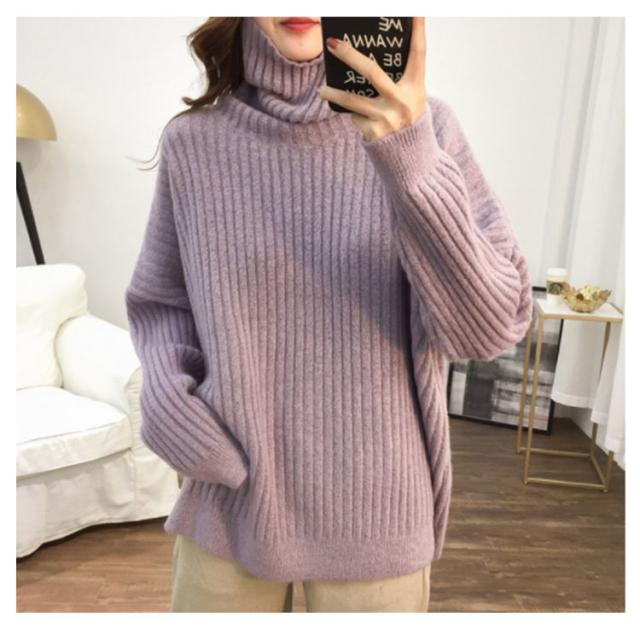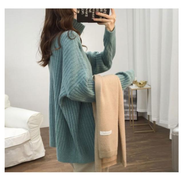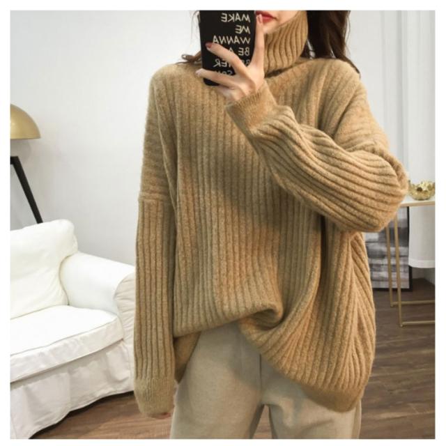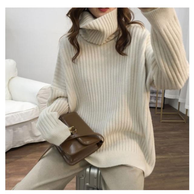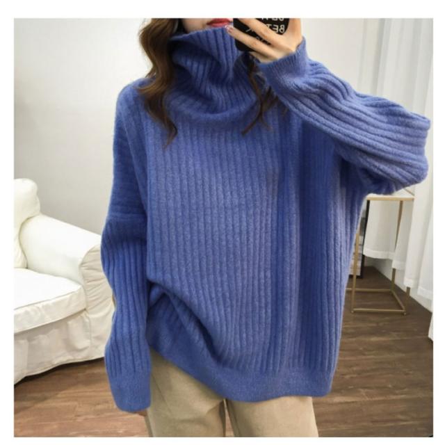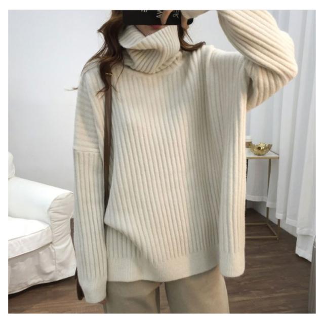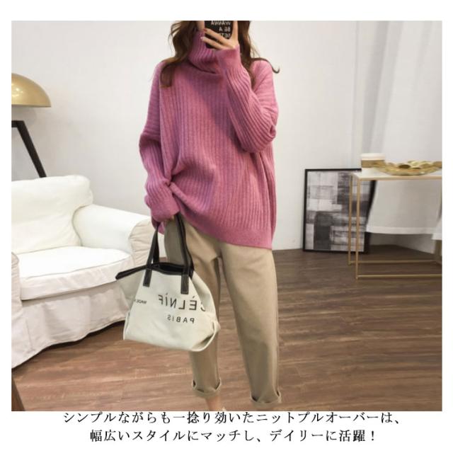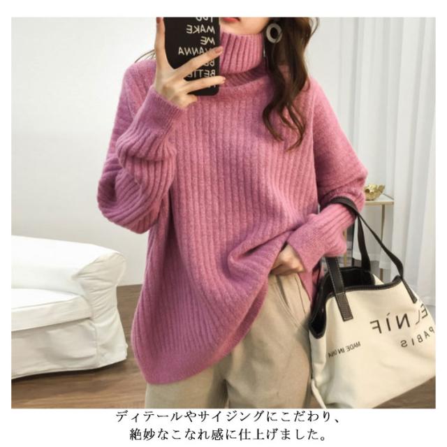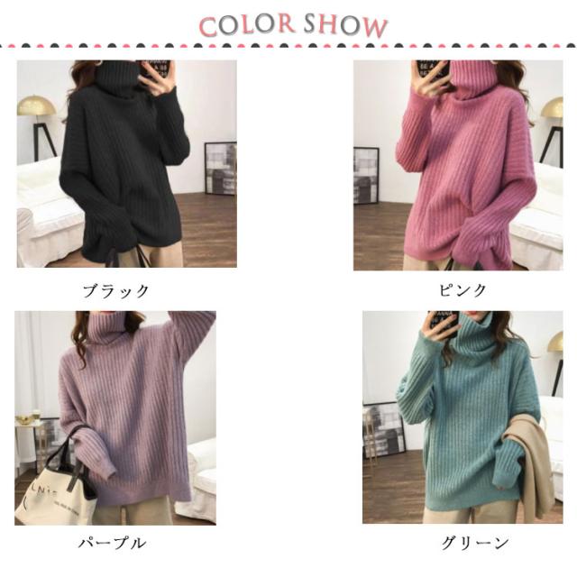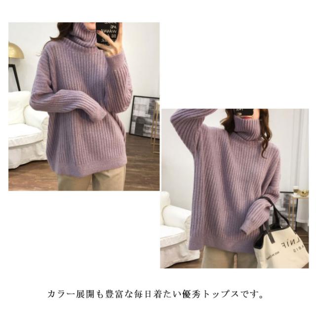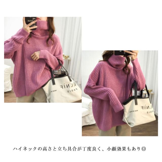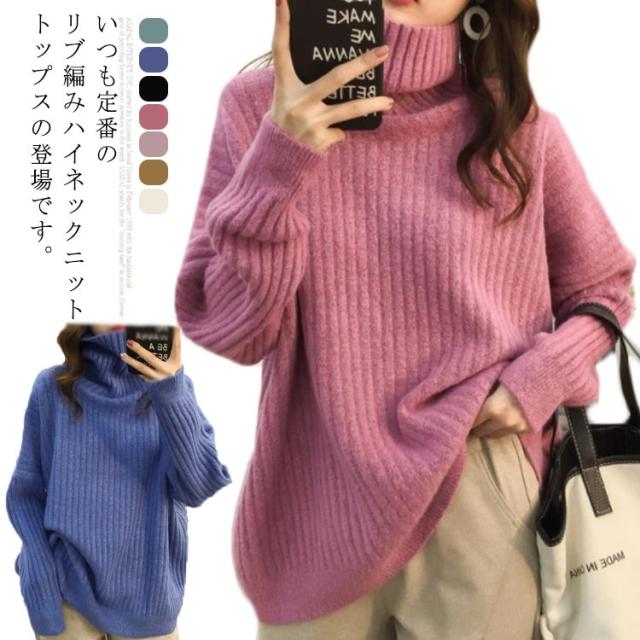 ドロップスリーブ ニット セーター ハイネック リブニット プルオーバー タートルニット タートルネック リブ編み ハイネックニット トップス 厚手 防寒 レディース ゆったり カジュアル オフィス おしゃれ