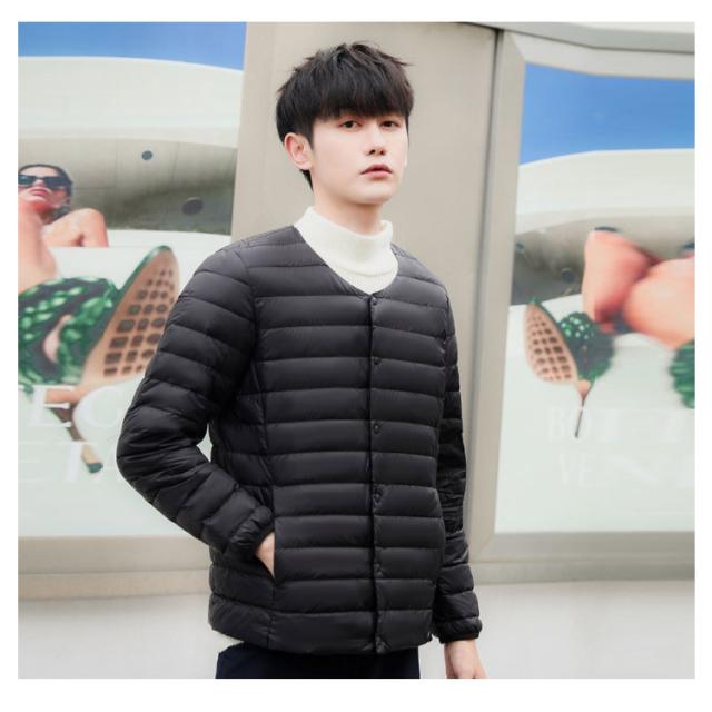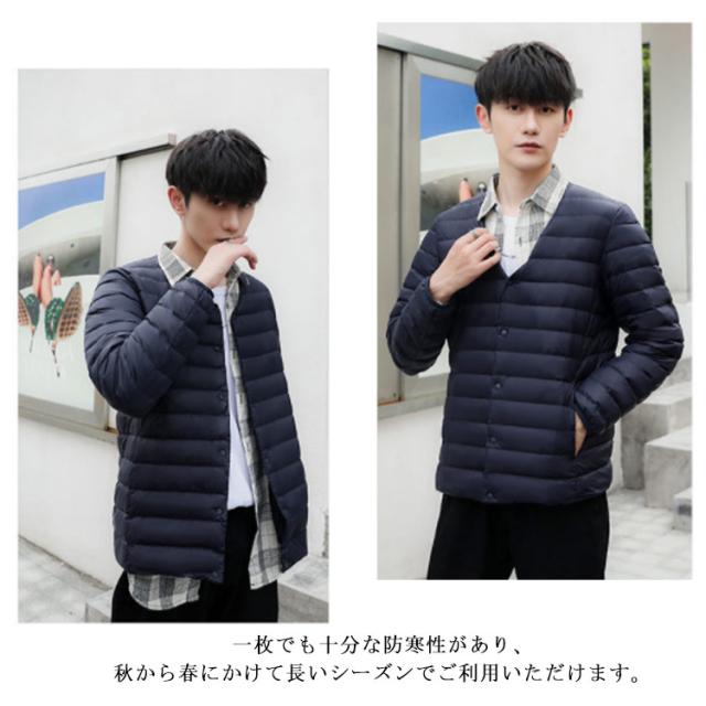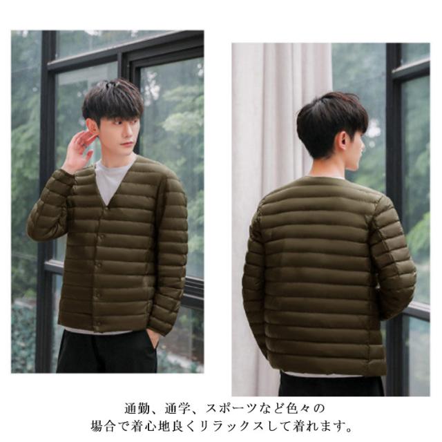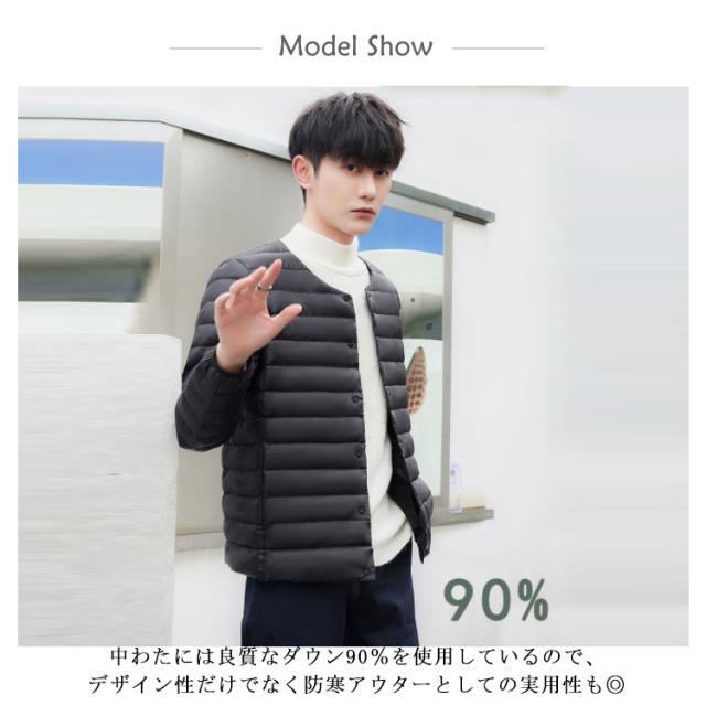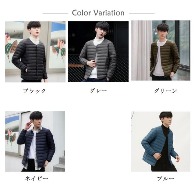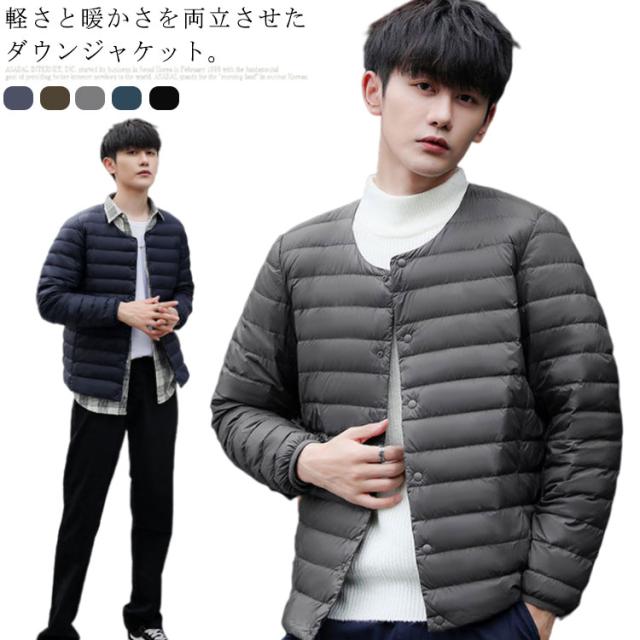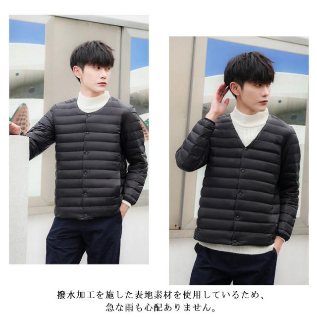 インナーダウン メンズ ダウンジャケット ノーカラー アウター 中綿 軽量 防寒 ライトダウンジャケット ビジネス アウター 秋冬 インナー ダウン ジャケット 長袖 ダウンコート 撥水加工 ライトアウター コンパクト