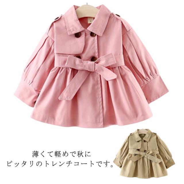 トレンチコート キッズ 長袖 スプリングコート ウインドブレーカー アウター 女の子 コート ダブルボタン フォーマル 秋 春 カジュアル 通学 通園 送料無料 80 90 100 110