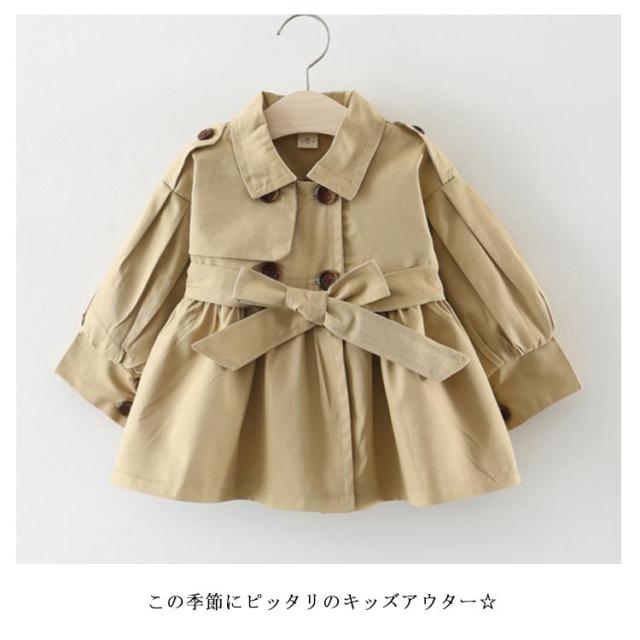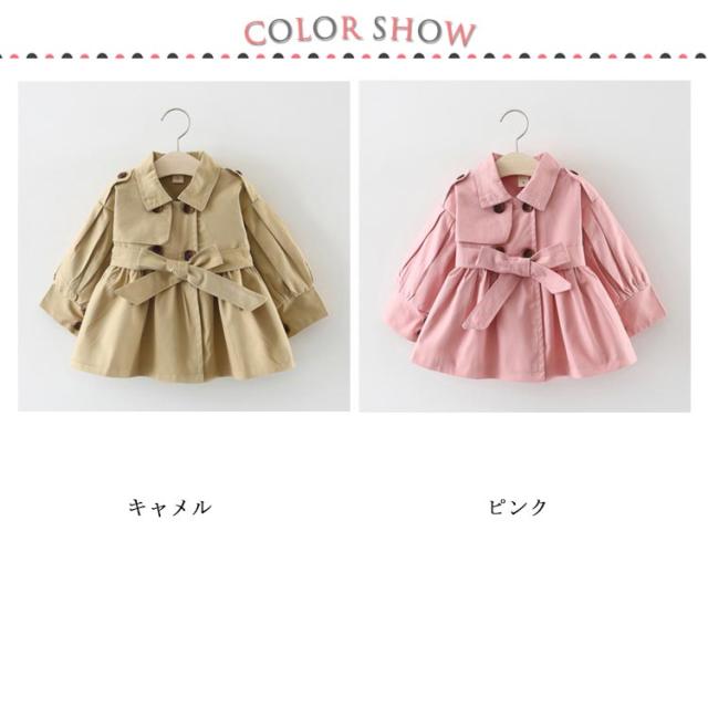 | 薄くて軽めで秋にピッタリのトレンチコートです。 シンプルだけどとても可愛くて気に入っています。 この季節にピッタリのキッズアウター☆ おしゃれながら防寒対策バッチリ♪ 寒気から大切なお子様を守る◎ | |