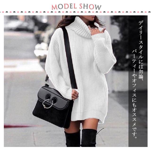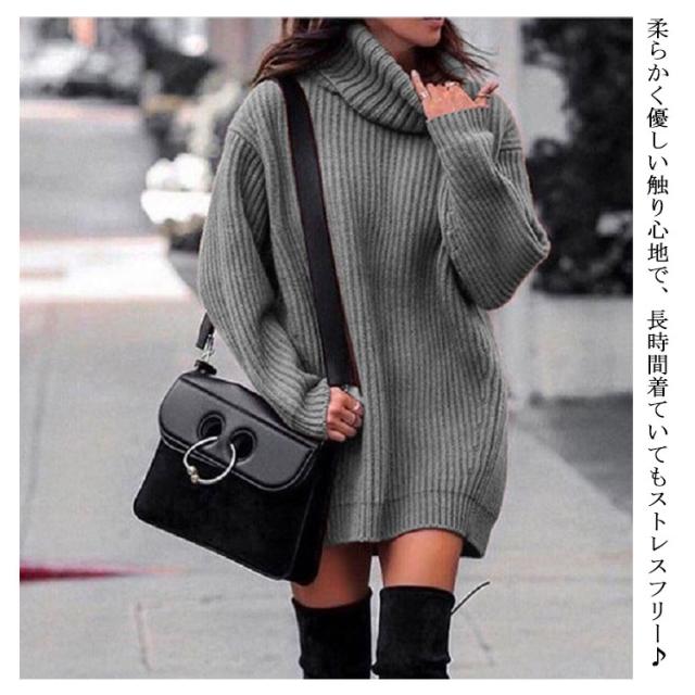 | タートルネックのシンプルなニットワンピース。 プルオーバーワンピースはカジュアルにもモードにも。 デイリースタイルには勿論、パーティーやオフィスにもオススメです。 サイズはふわりと大きめなので、大きいサイズの人も着ることができます。 柔らかく優しい触り心地で、長時間着ていてもストレスフリー♪ | |