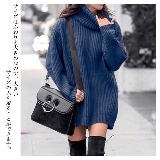 ニットワンピース ビッグシルエット ミニ丈 ニット タートルネック プルオーバー 長袖 ロングセーター 着痩せ 秋服 冬服 デート お出かけ 無地 ルーズ シンプル カジュアル ゆったり お洒落