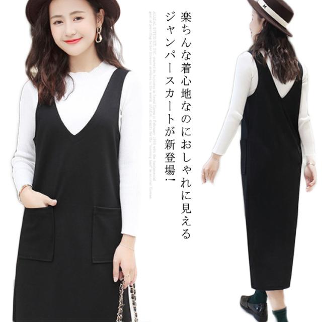 ジャンパースカート レディース ノースリーブ ワンピース 深Vネック 大きいサイズ ロングワンピース 秋冬 コットン 綿 オールインワン サロペット Iライン ゆったり 重ね着