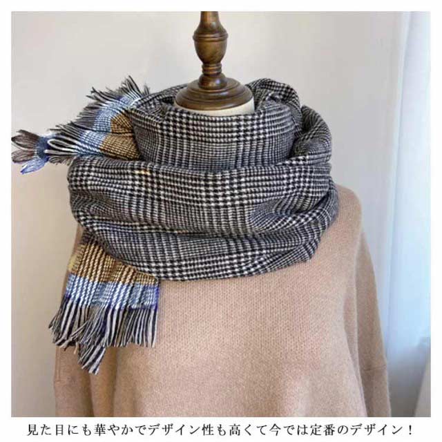マフラー レディース チェック柄 大判 ストール 羽織り 秋冬 厚手 肩掛け 防寒 柔らかい