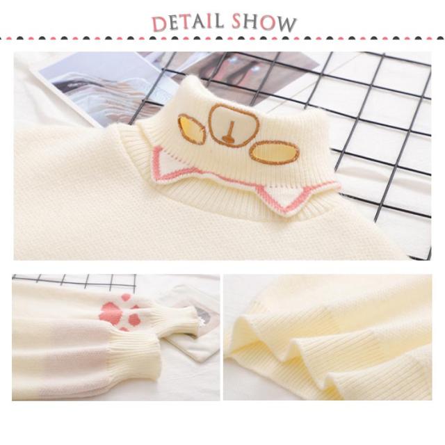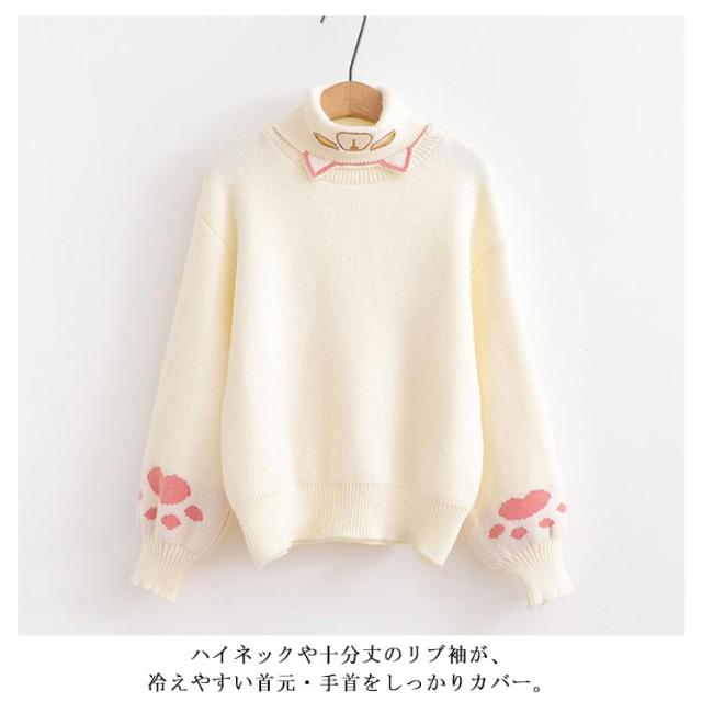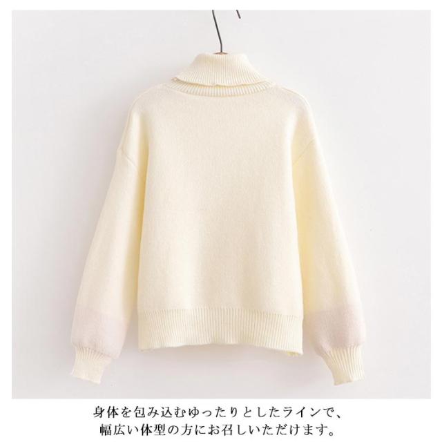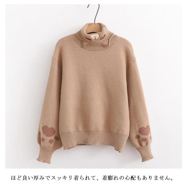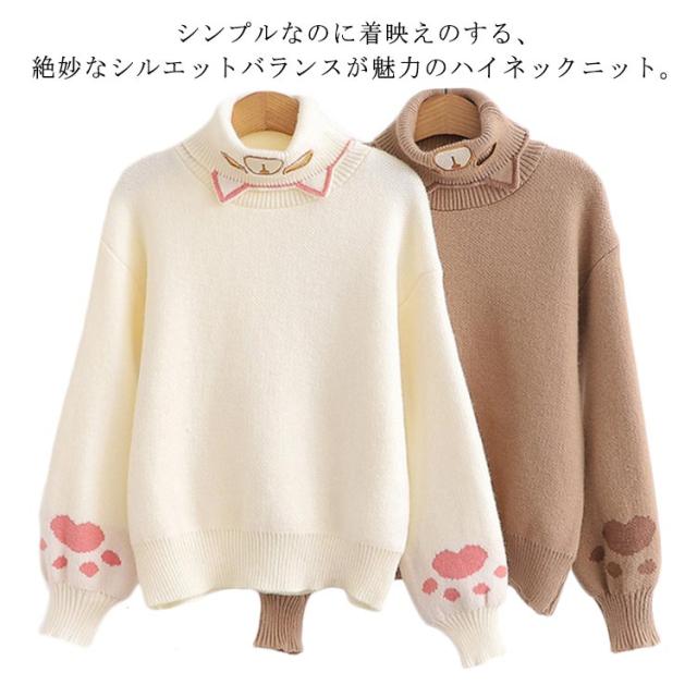 タートルネックセーター レディース ニットセーター タートルネック 猫柄 トップス ハイネックニット プルオーバー ネコ 猫爪 刺? 秋冬 冬服 冬物 おしゃれ 可愛い ゆったり フリーサイズ