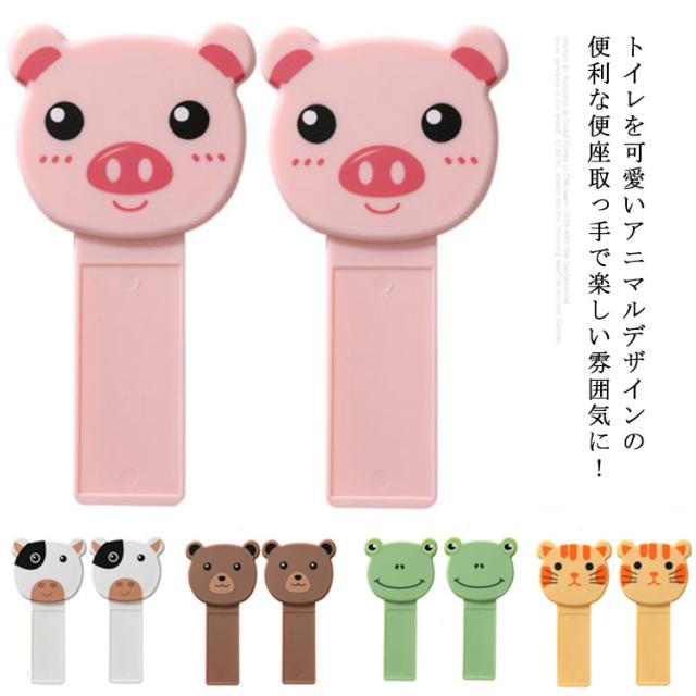 送料無料 2個セット 便座取っ手 便器シート ハンドル トイレ用品 衛生的 清潔 感染防止 開閉 ハンドル 持ち上げ トイレ蓋 便座リフター 便座用 浴室用品 アニマル かわいい 握りやすい 子ども キッズ 簡単設置 トイレグッズ
