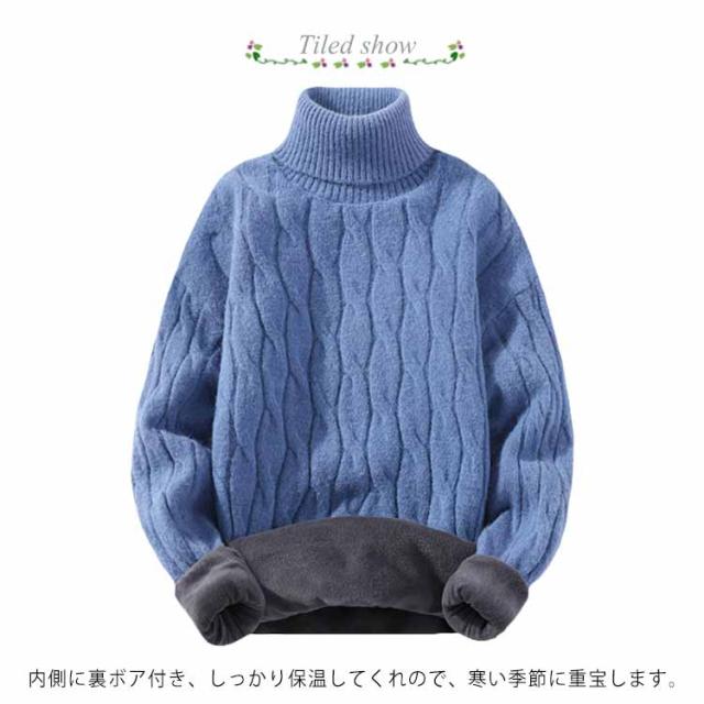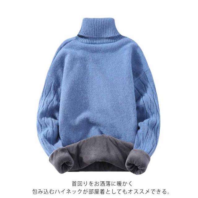 ニットセーター メンズ ニット 裏起毛 トップス 裏ボア あったか 防寒 ハイネック 冬服 保温 プルオーバー ゆったり カジュアル シンプル 厚手 寒さ対策 普段着