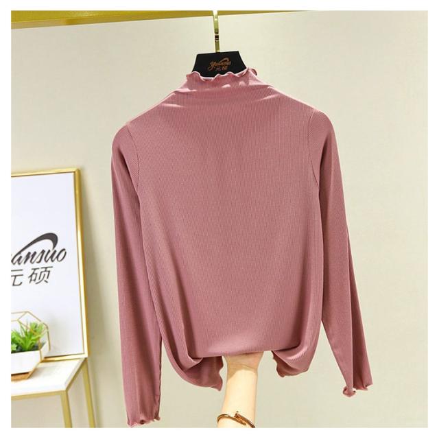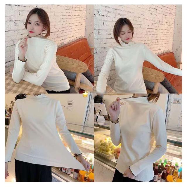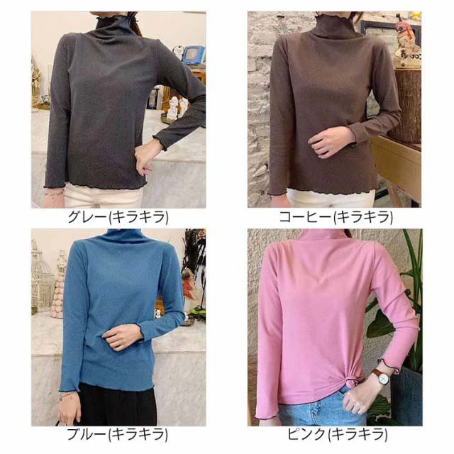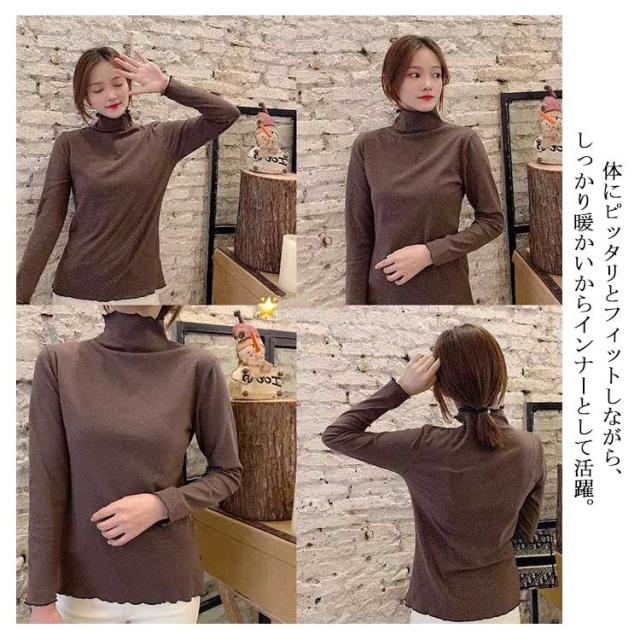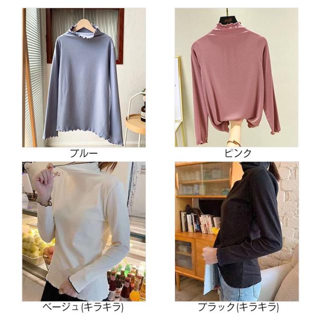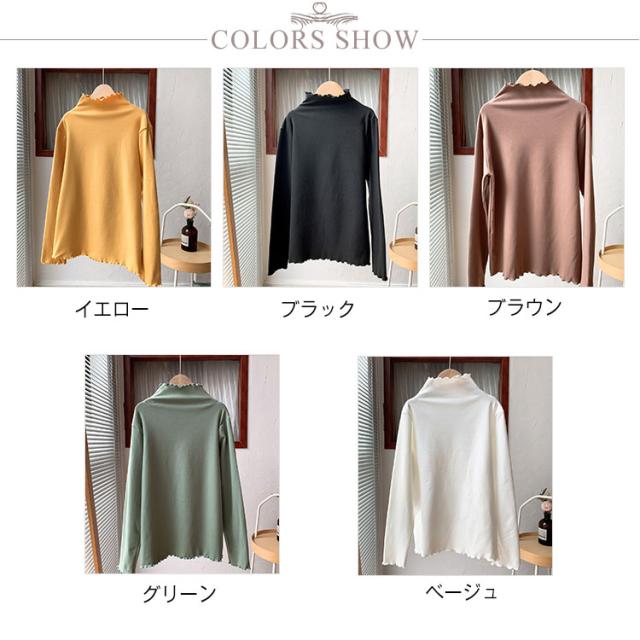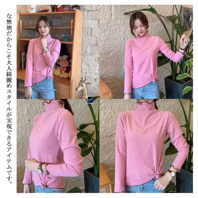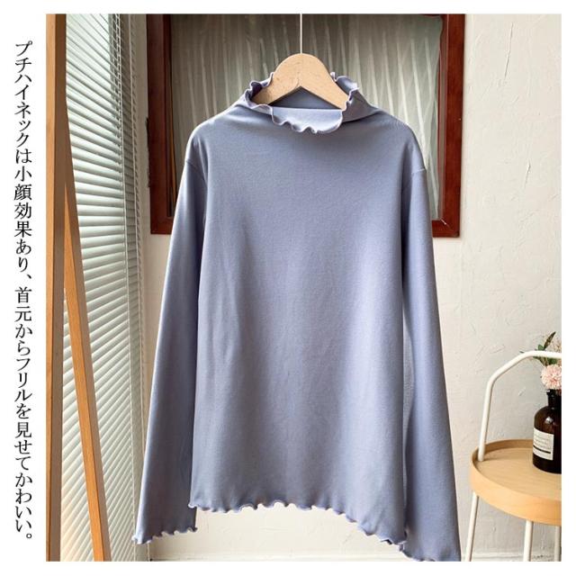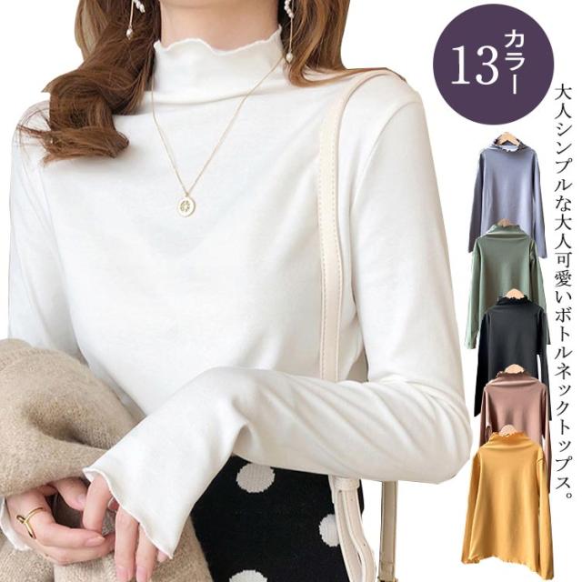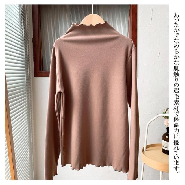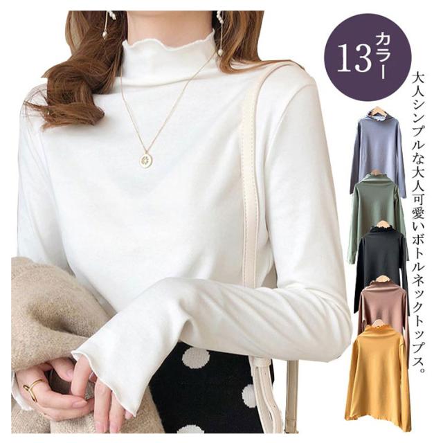 トップス カットソー 秋冬 暖かい プチハイネック レディース 全13色 メロウ フリル インナー 長袖 防寒 ボトルネック 重ね着 無地 スリム あったか 保温 着痩せ シンプル おしゃれ プルオーバー 送料無料