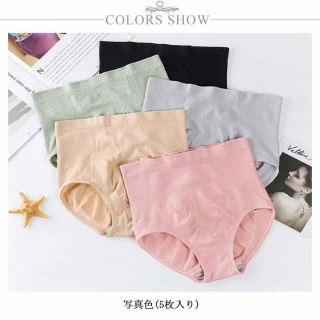 5枚セット ハイウエストショーツ レディース 温活 美尻 スタンダード 下着 モモパンツ 引き締め 女性 補整 インナー 冷え性 あったか フィット感 補正下着 お尻 ヒップアップ 無地 シームレス 深ばき 送料無料