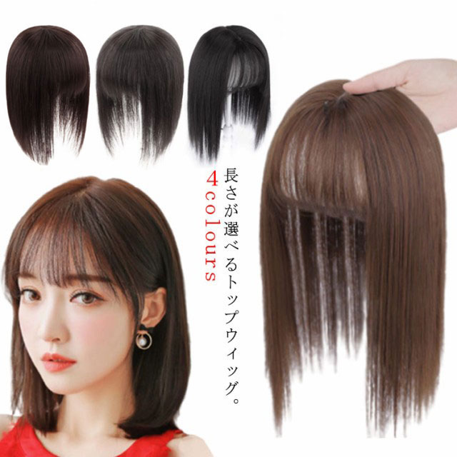 | 長さが選べるトップウィッグ。 ヘアカラー4色からお選びいただけます。 ボリュームアップ、薄毛、増毛、白髪隠しに最適!小顔効果も抜群。♪ 三つのピンでしっかり固定! ワンタッチで手軽に着けれます。 医療用としても普段使いとしても着用可能です。 | |