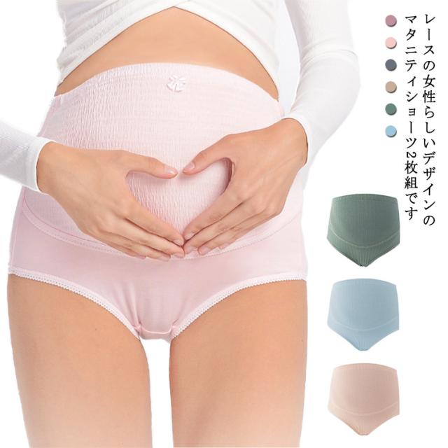 2枚組 マタニティ ショーツ ハイウエスト インナー 下着 コットン 抗菌 お腹 伸びる レース 柔らかい おしゃれ 妊婦 冷え対策 出産準備 産前 妊娠初期 綿 パンツ 大きいサイズ 伸縮性 肌に優しい 送料無料