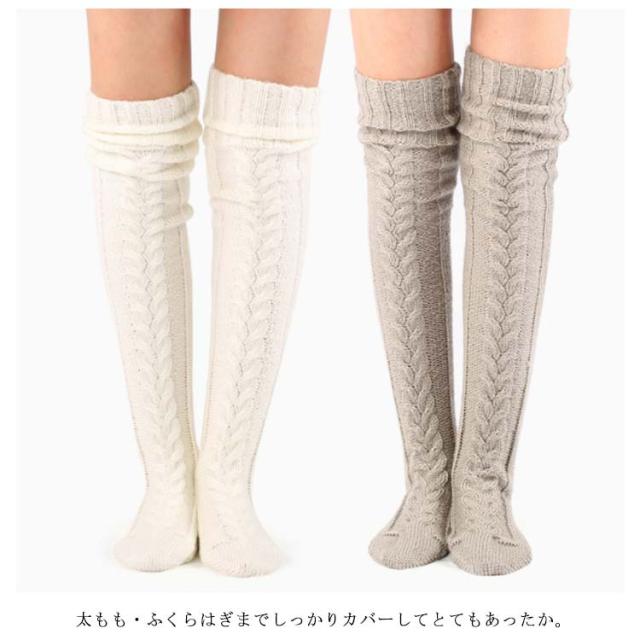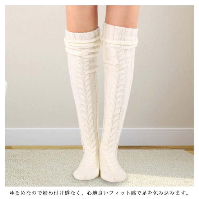 | 冷え性の女性にオススメの極厚のおしゃれなケーブル編み靴下。 ゆるめなので締め付け感なく、心地良いフィット感で足を包み込みます。 太もも・ふくらはぎまでしっかりカバーしてとてもあったか。 シンプルなデザイン、どんなジャンルの服にも合うからチャレンジしやすい! 学校やオフィスなど、室内履きにもおすすめします! | |