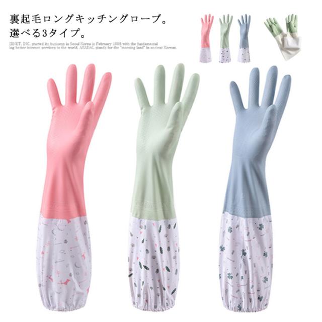 ゴム手袋 クリーニンググローブ キッチングローブ 送料無料 ロンググローブ ロング 裏起毛 厚手 暖かい 手荒れ防止 ロング 食器洗い 掃除 家事 洗車 送料無料 選べる3タイプ キッチン用 皿洗い ガーデニング