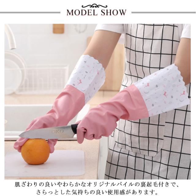 | 裏起毛ロングキッチングローブ。選べる3タイプ。 高品質ゴムとPVC素材を採用しており、丈夫で長持ち。 肌ざわりの良いやわらかなオリジナルパイルの裏起毛付きで、さらっとした気持ちの良い使用感があります。 手袋のひら側は滑り止めデザインで、グリップ力が優され、もっと安定します。 手荒れを防止、手肌をしっかり守ります。家族や母親の贈り物に最適です。 | |