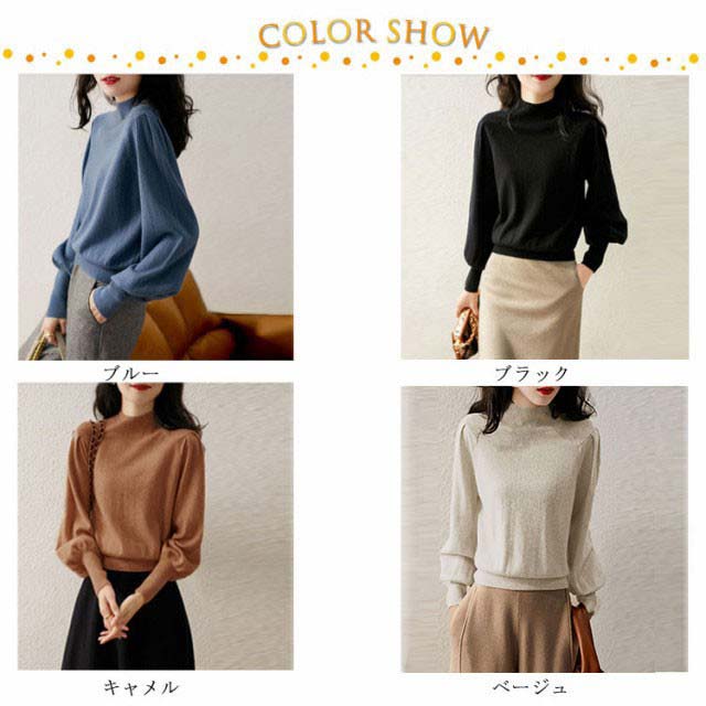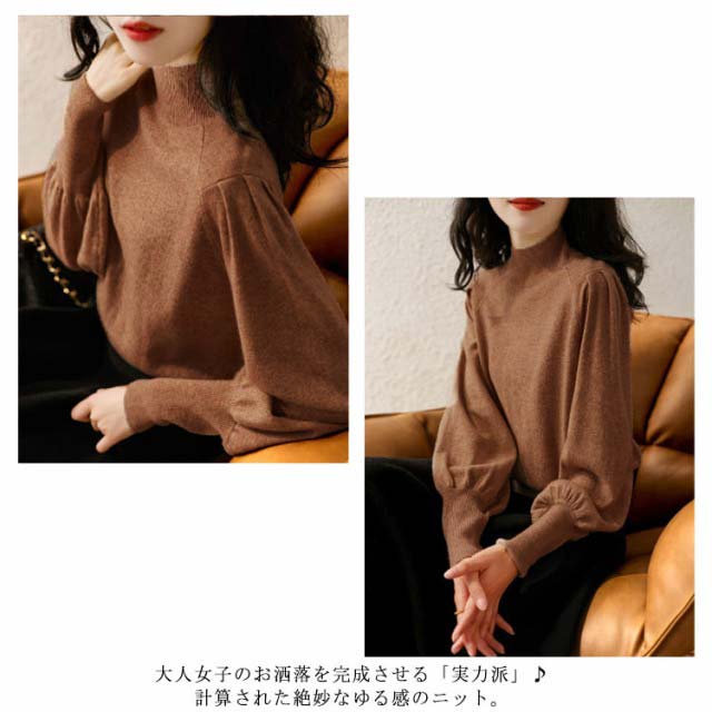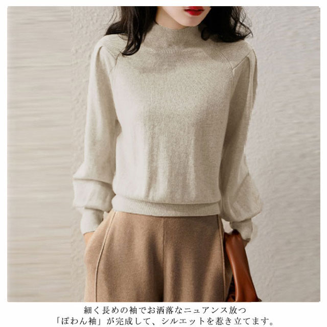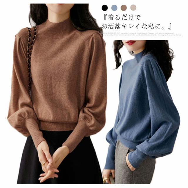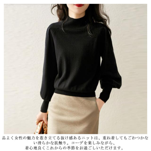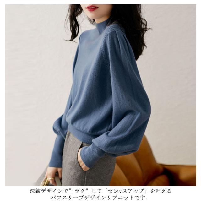 ボリューム袖 ニット レディース セーター ニット ニットセーター ショート丈 ニットソー チュニック トップス プチハイネック トップス ハイネック 長袖 パフスリーブ ぽわん袖 シンプル 定番 着回し シルエット 無地