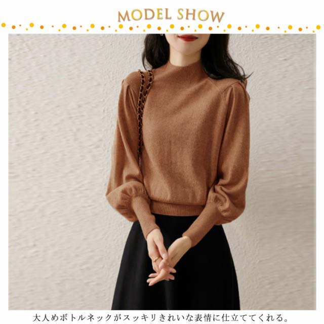 | 『着るだけでお洒落キレイな私に。』 大人女子のお洒落を完成させる「実力派」♪ 計算された絶妙なゆる感のニット。 大人めボトルネックがスッキリきれいな表情に仕立ててくれる。 細く長めの袖でお洒落なニュアンス放つ「ぽわん袖」が完成して、シルエットを惹き立てます。 品よく女性の魅力を惹き立てる抜け感あるニットは、重ね着してもごわつかない滑らかな肌触り。コーデを楽しみながら、着心地良くこれからの季節をお過ごしいただけます。 洗練デザインで”ラク”して「センスアップ」を叶えるパフスリーブデザインリブニットです。 | |