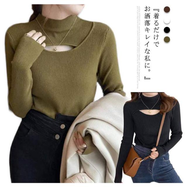 セーター ニット レディース ニットセーター ショート丈 ニットソー リブ 送料無料 ハイネック カットソー トップス ショート丈 インナー ショート丈ニットセーター プルオーバー 長袖 秋 冬 無地 シンプル カジュアル インナー コーデ リブ