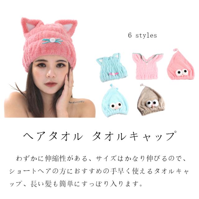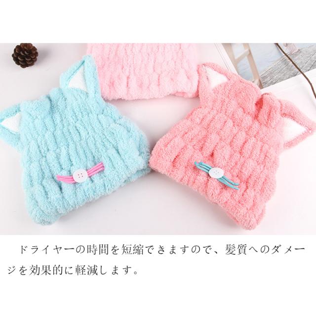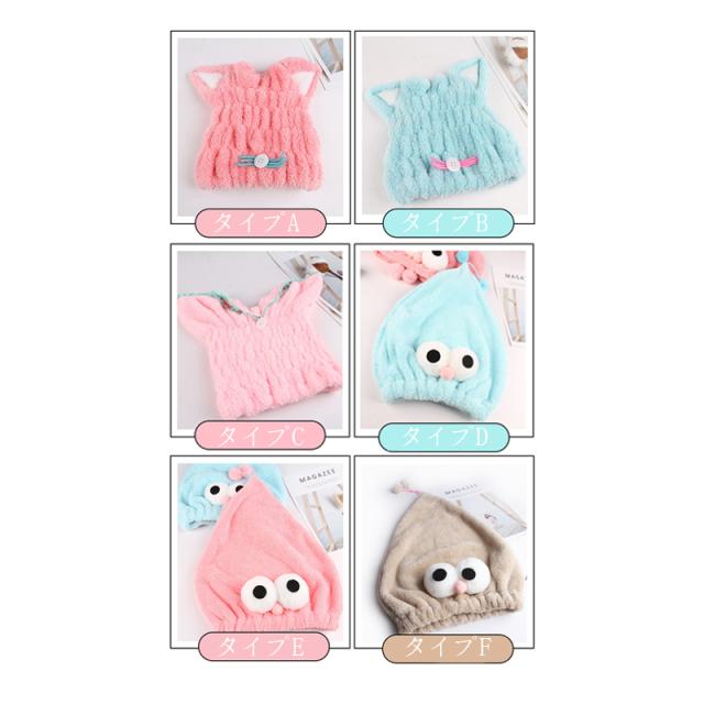 ヘアタオル タオルキャップ ドライキャップ ヘアキャップ 吸水タオル 吸水 速乾 髪 ふわもこ 風邪を防ぐ ドライキャップ ヘアターバン 強い吸水性 お風呂上がり かわいい ウサギ 猫耳 バス用品 6タイプあり