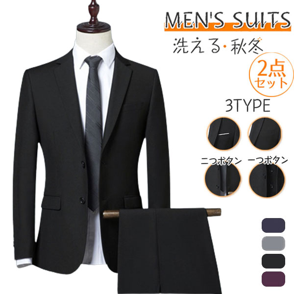 ポイント超超祭 ビジネススーツ 2点セット メンズ スリム 秋冬 スーツ フォーマル セットアップ おしゃれ リクルート 面接 結婚式 卒業式 紳士服