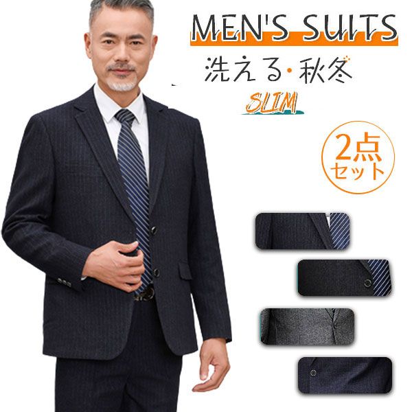 ポイント超超祭 ビジネススーツ 2点セット メンズ スリム 秋冬 スーツ フォーマル セットアップ おしゃれ リクルート 面接 結婚式 卒業式 紳士服