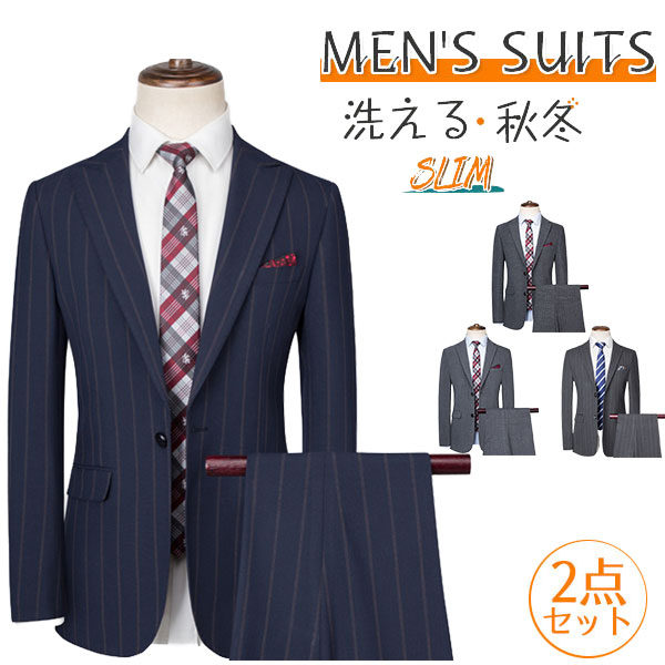 ポイント超超祭 スーツ 2点セット メンズ ビジネス スリム 秋冬 紳士服 フォーマル セットアップ おしゃれ リクルート 面接 通勤 結婚式 卒業式 出張