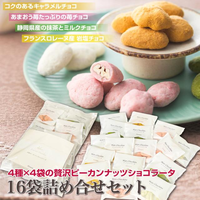 バレンタイン ばらまき ナッツ チョコレート 個包装 4種のピーカンナッツショコラータ4種×4袋(16袋) 詰め合わせ プレゼント ペカンナッツショコラ ナッツチョコレート ギフト ピーカンナッツチョコレート お菓子 チョコ キャラメル 苺 抹茶 スイーツ ショコラ 小分け お配り