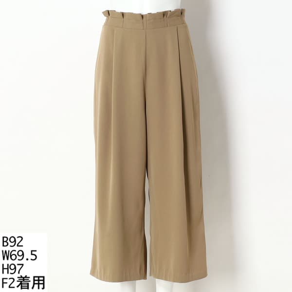 【大きいサイズ レディース】ツイルウエストフレアワイドパンツ