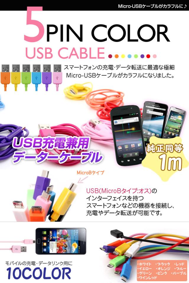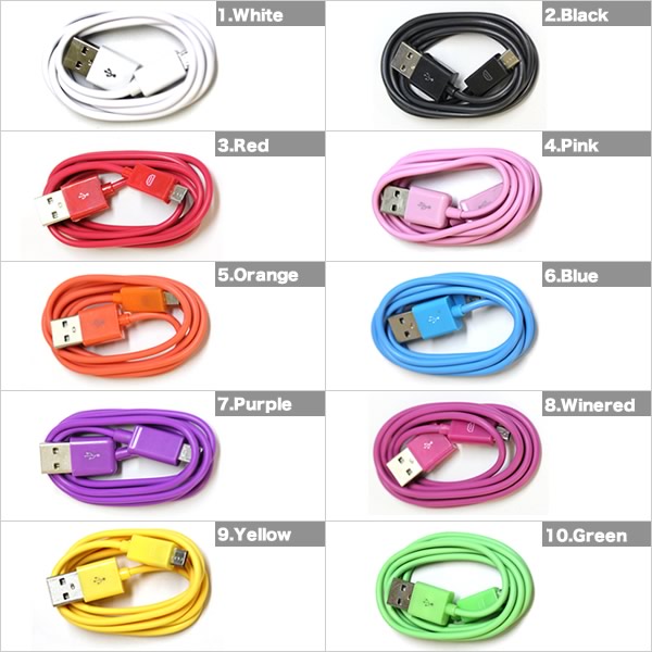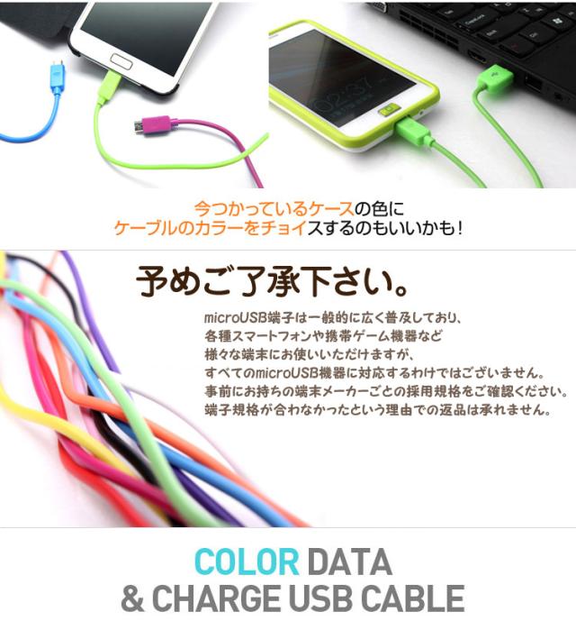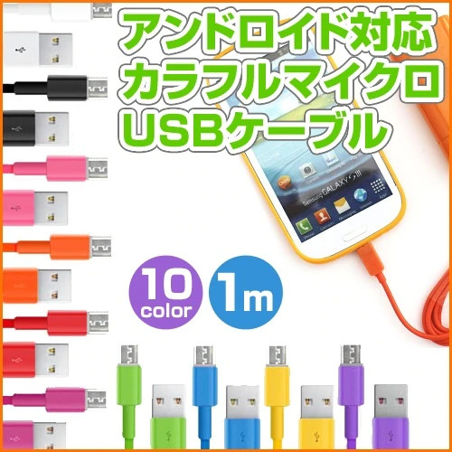microUSB充電ケーブル カラフルケーブル長約1m マイクロusb スマホ/スマートフォン android/アンドロイド用 携帯ケーブルオプションお得な割引価格で