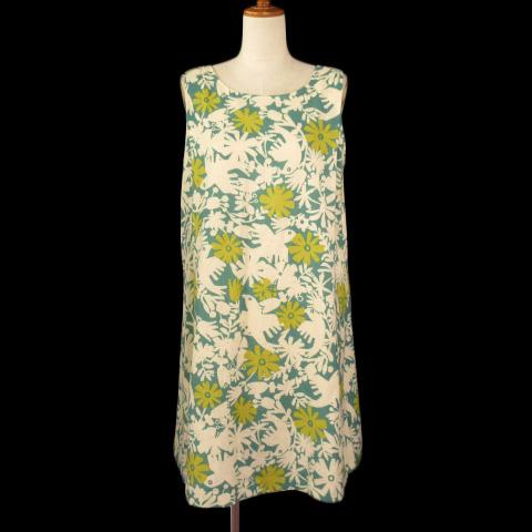 【中古】ホコモモラデシビラ Jocomomola de Sybilla お花と鳥のAラインワンピース 40 アイボリー 緑 レディース