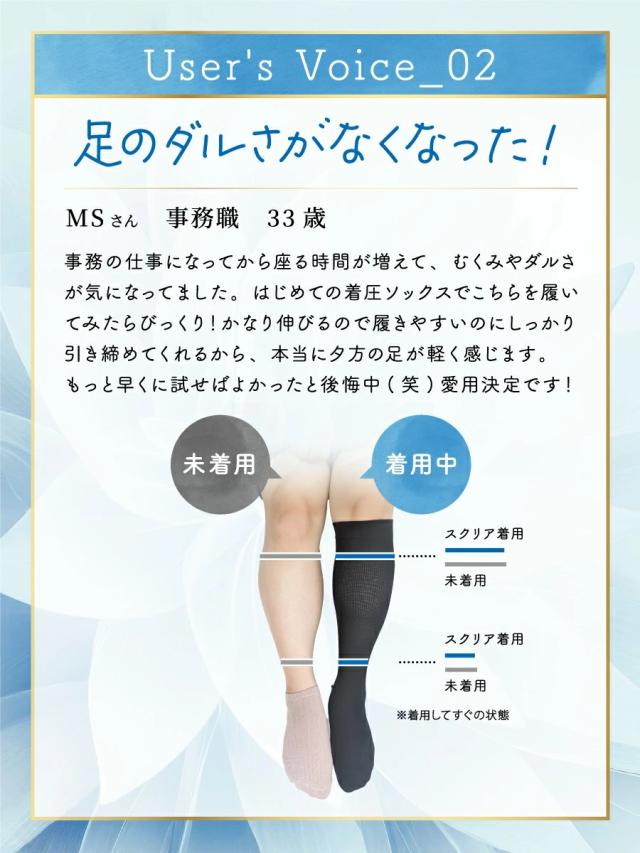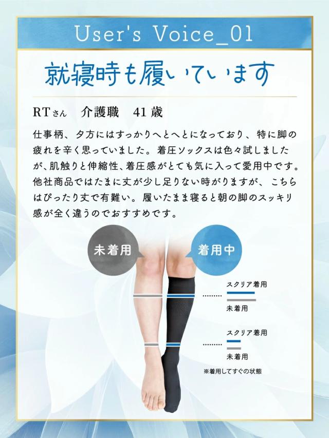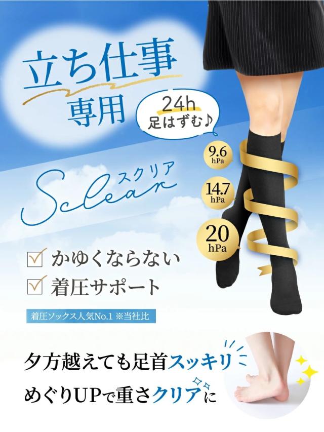 プロ監修のもと、立ち仕事の女性の声を聞いて、きつ過ぎない理想の着圧を実現した加圧ソックス!