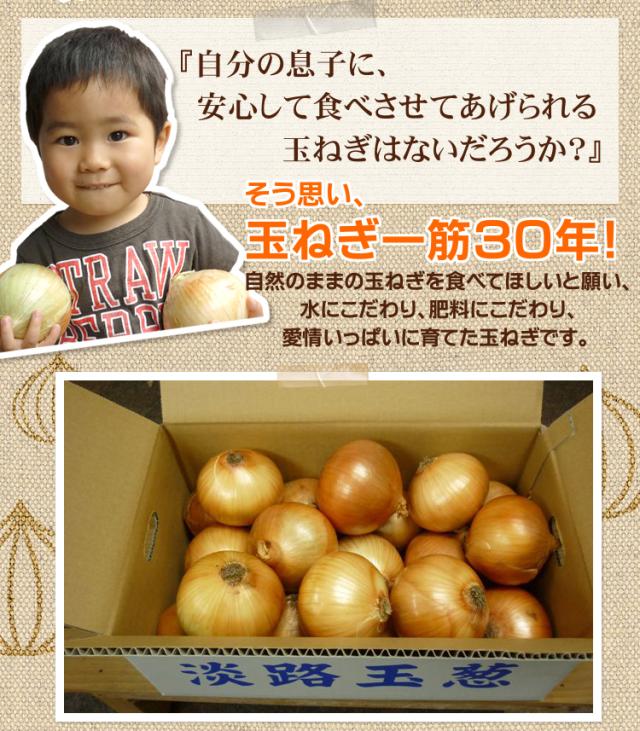有機肥料にこだわり愛情を注ぎ温暖な淡路島の気候で育てた玉ねぎは甘くて辛みが少なくとてもみずみずしいです。当店は淡路島の玉ねぎ生産認定農家です。又、持続性の高い農業生産方式を導入し兵庫県認定の安心・安全エコファ−マ−を認証しております。