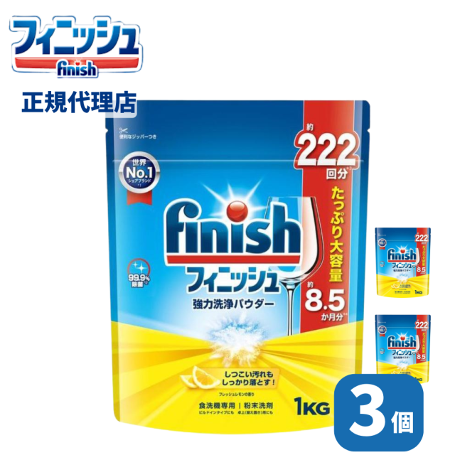 【3個セット】食洗機 洗剤 フィニッシュパワー&ピュア 大型レモン 1kg 3個 食洗機 洗剤 強力 最強 食洗器 まとめ買い セット 食洗機用洗剤