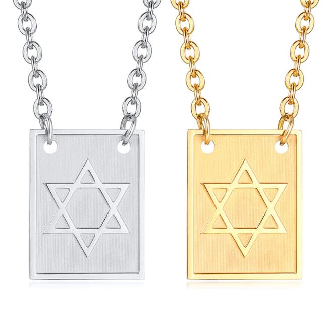 タリスマン ステンレスネックレス / ダビデスター (68cmのステンレスチェーン付き) ネックレスチェーンつき ペンダントトップ ステンレス製 メンズ レディース 首飾り 彼氏 彼女 プレゼント ギフト ゴールド 金色 シルバー 銀色 四角形 スクエア ドッグタグ風 六芒星 魔方陣