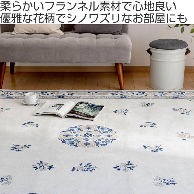 ラグ 190×240cm フランネルラグ ミュゲ ( カーペット 絨毯 マット ホットカーペットカバー 3帖 3畳 ホットカーペット カバー 床暖 対応 フランネル素材 花柄 短毛 オールシーズン すべり止め プリント 手洗い )