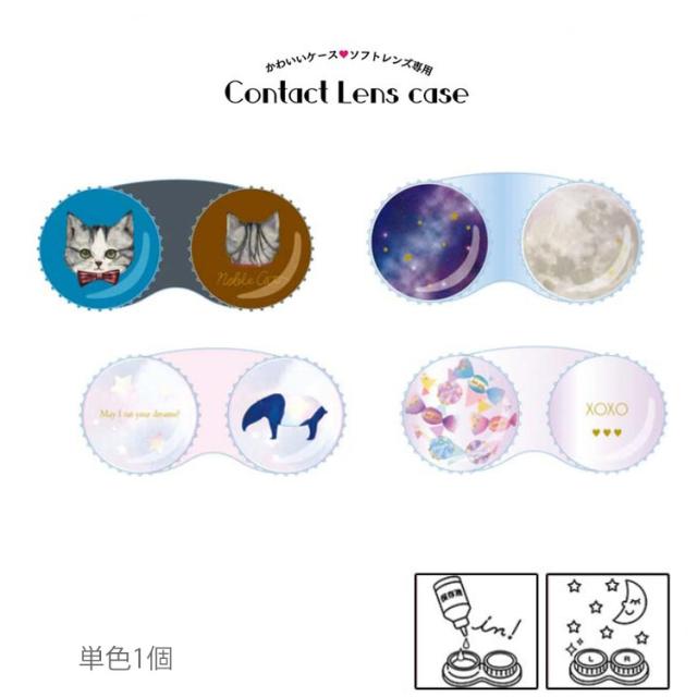 【即日発送】コンタクトレンズケース 単品 ソフトレンズ専用 カラコンOK 持ち運び 携帯用 保存 ケア用品 レンズケア 可愛い ゆめかわいい 旅行 学校 会社 猫 キャンディー 宇宙柄 月模様 クリアケース コンタクトケア 当日発送 soft contact lenscase